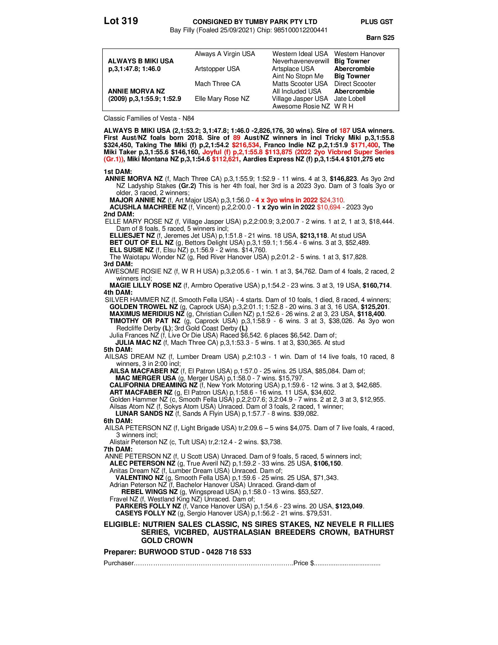 2021 FILLY OUT OF ANNIE MORVA NZ