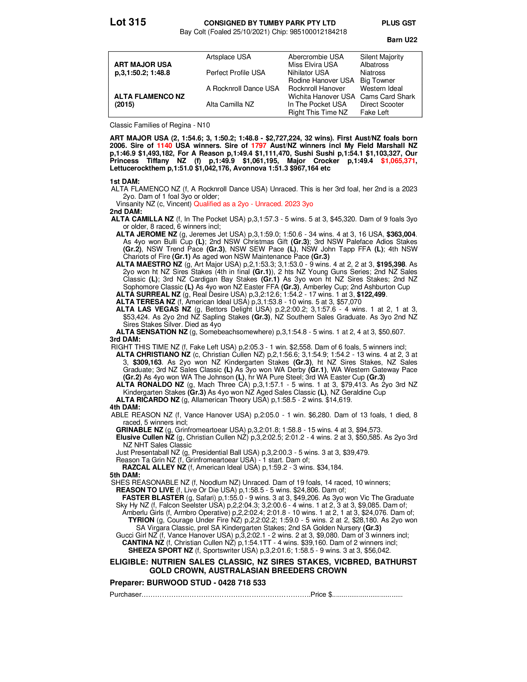 2021 COLT OUT OF ALTA FLAMENCO (NZ)