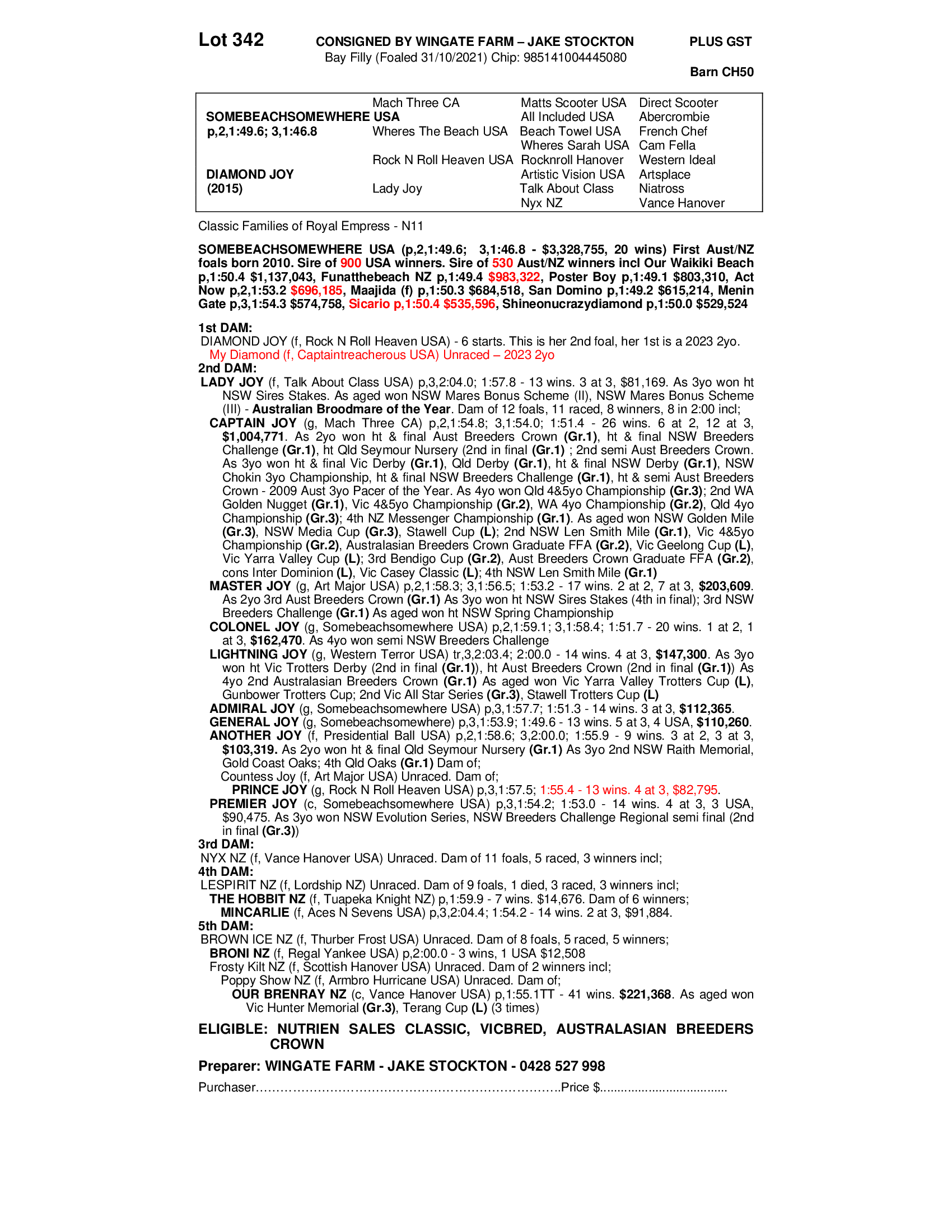 2021 FILLY OUT OF DIAMOND JOY