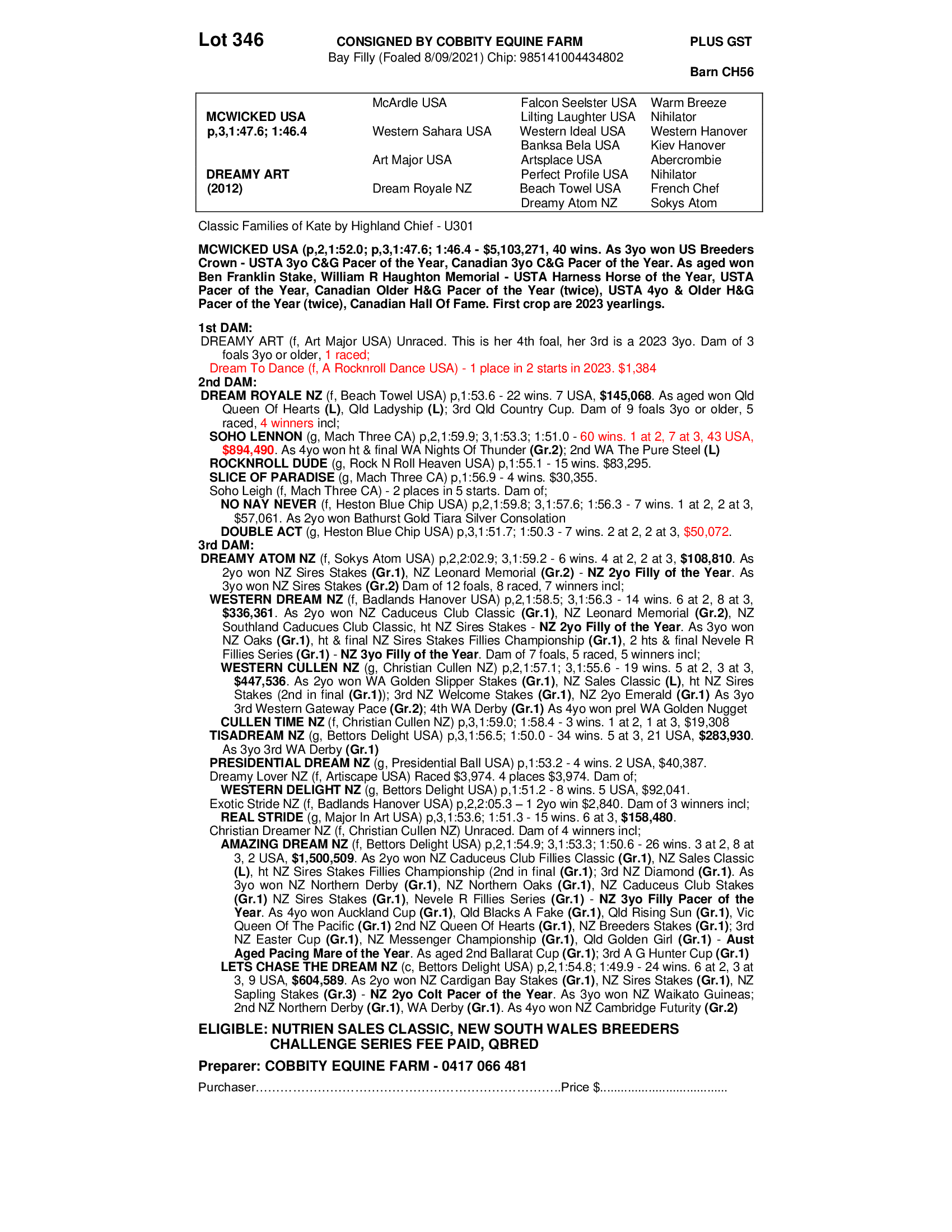 2021 FILLY OUT OF DREAMY ART