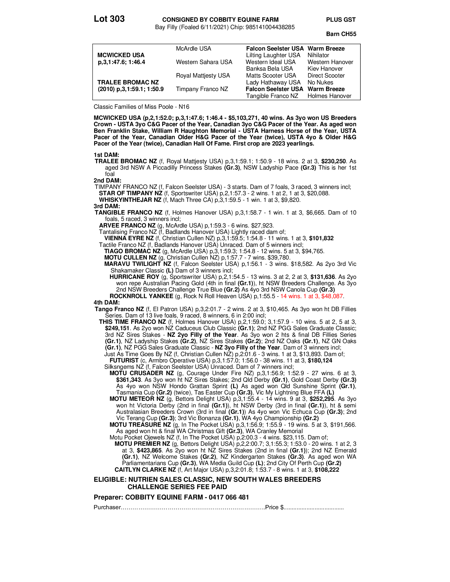 2021 FILLY OUT OF TRALEE BROMAC NZ