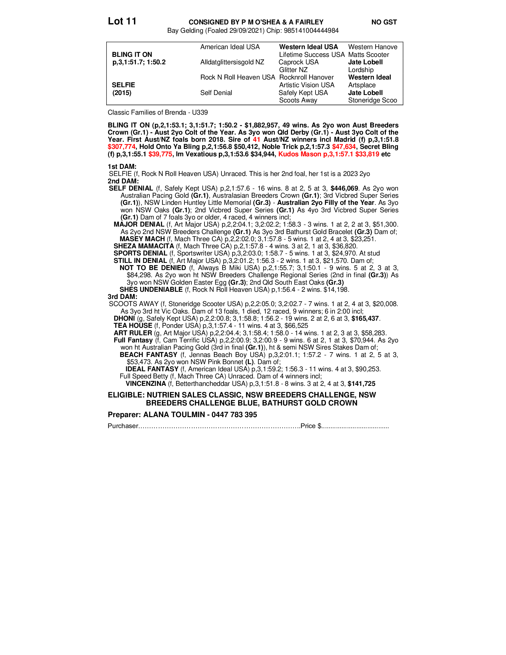 He is from one of Australia's best maternal families, which includes the following well performed horses: