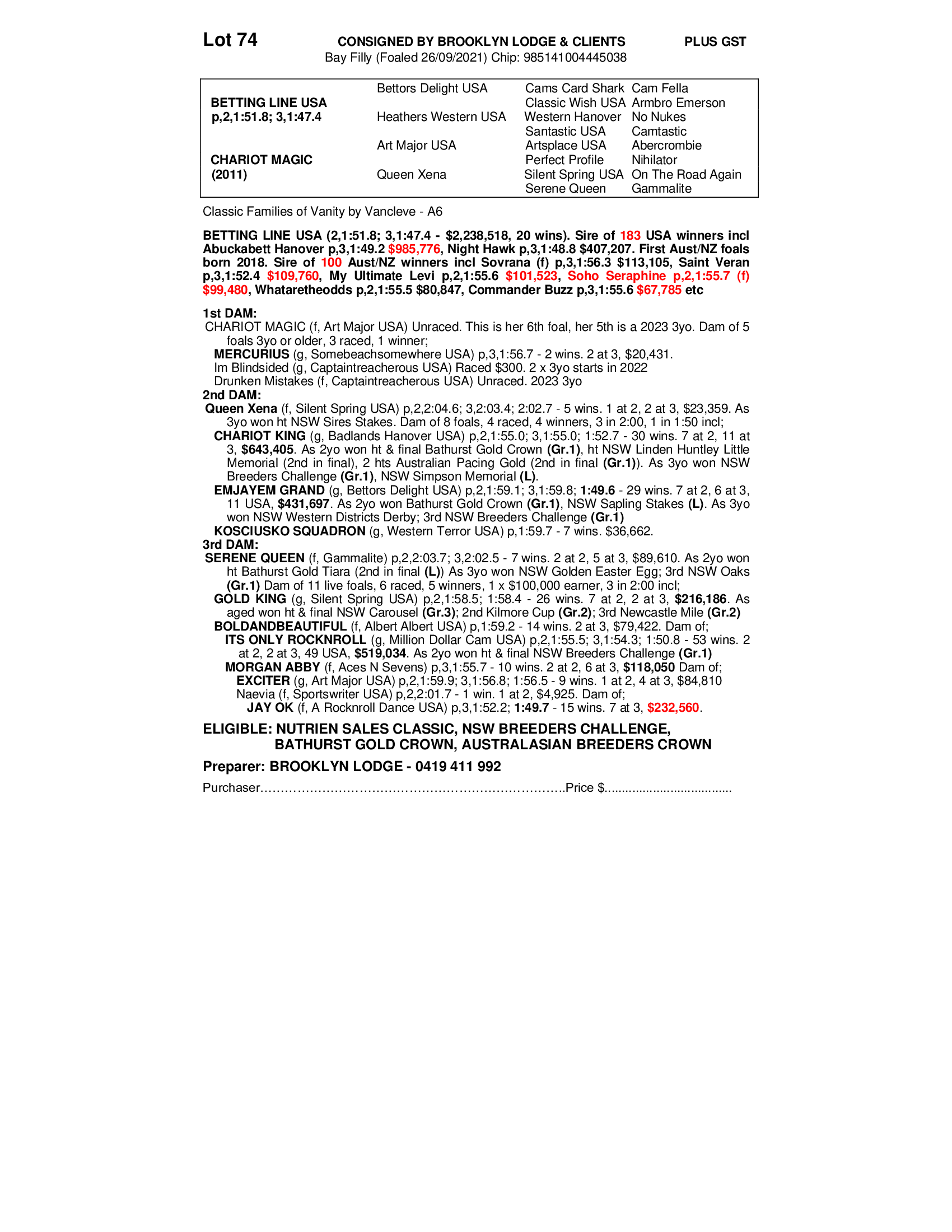 2021 COLT OUT OF CHARIOT MAGIC