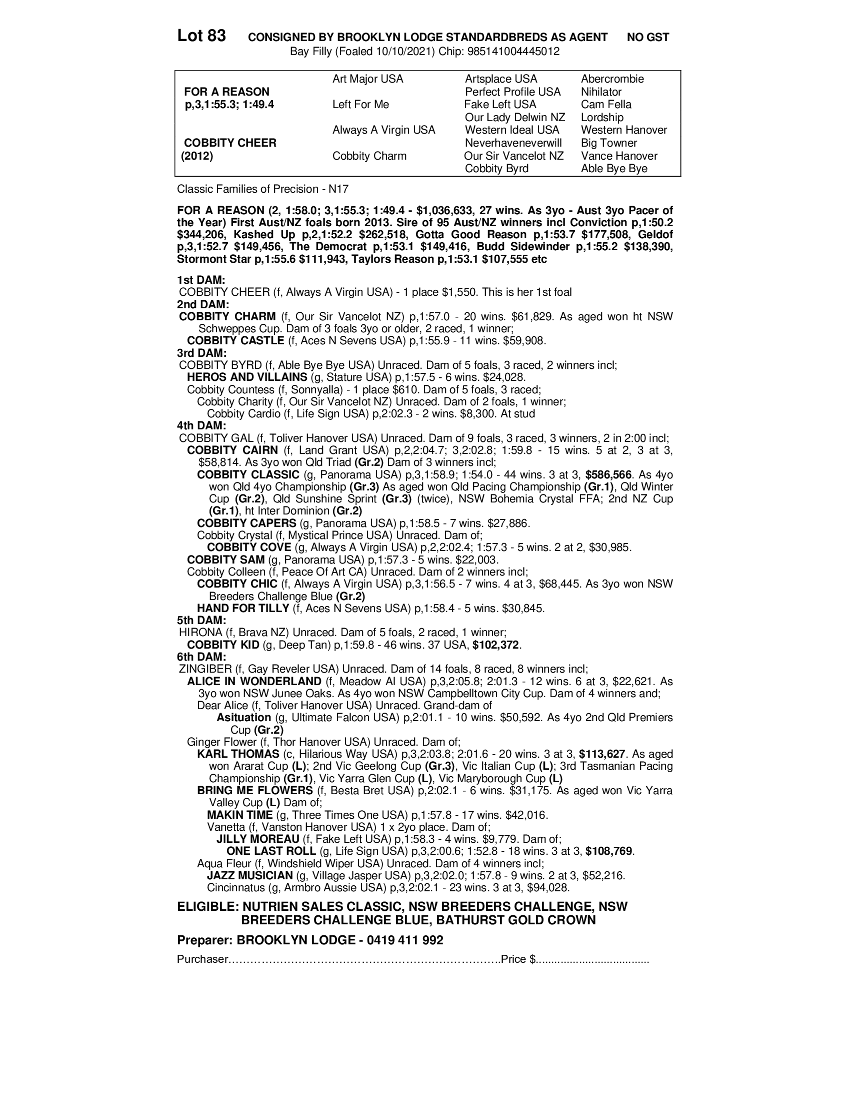 2021 FILLY OUT OF COBBITY CHEER