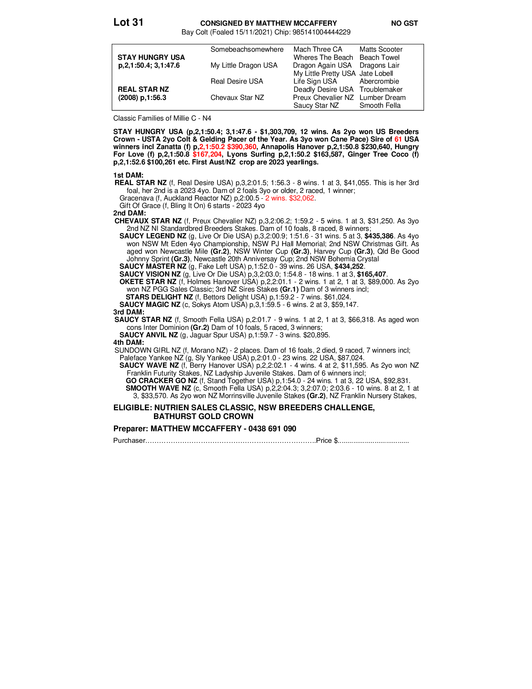 2021 COLT OUT OF REAL STAR NZ