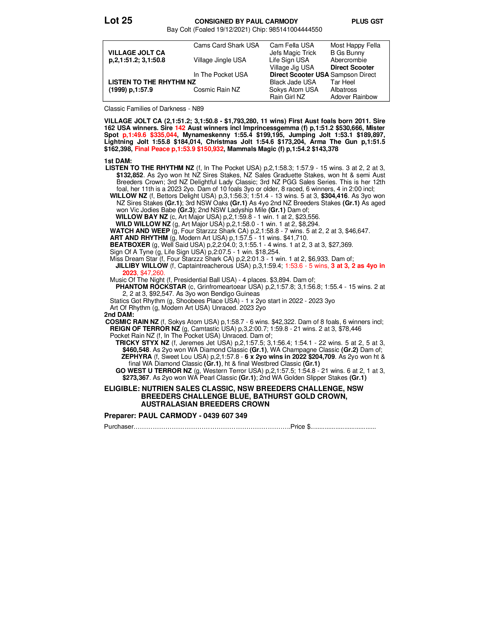 2021 COLT OUT OF LISTEN TO THE RHYTHM NZ