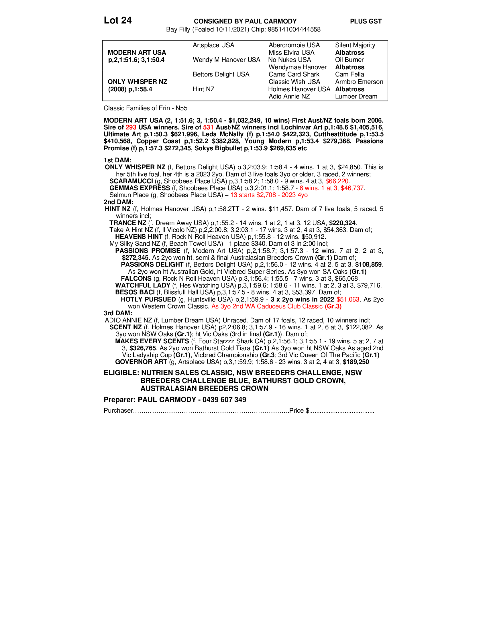 2021 FILLY OUT OF ONLY WHISPER NZ