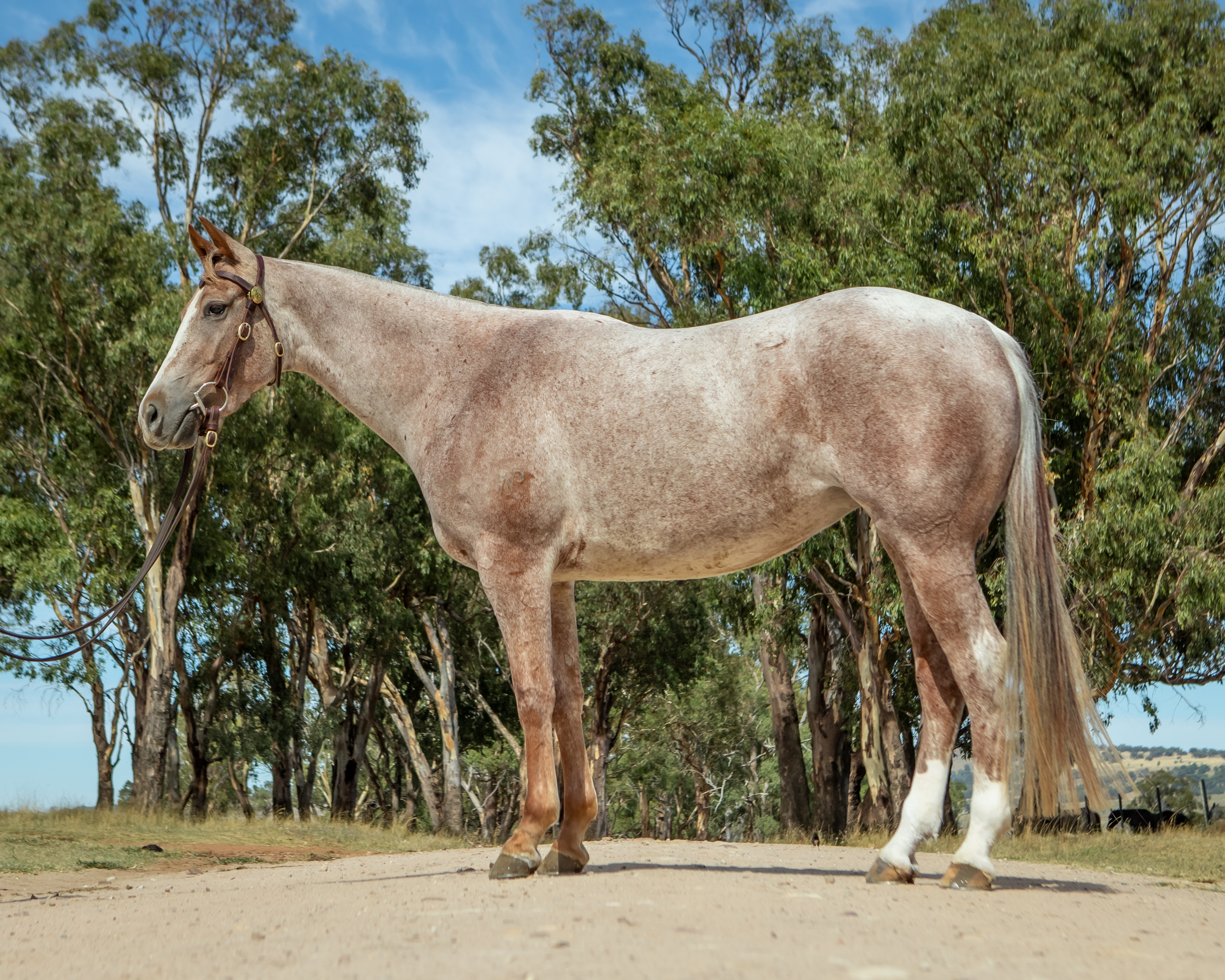 Out of Pete Comiskey’s top campdraft mare Paris (Gold Buckle Winner in 2019) and by top American sire Smooth Talkin Style. Very stylish young mare, has had 18 months riding after being broken in in June 2021. Started on cattle, future foundation mare. Sale prep with Troy Palmer.