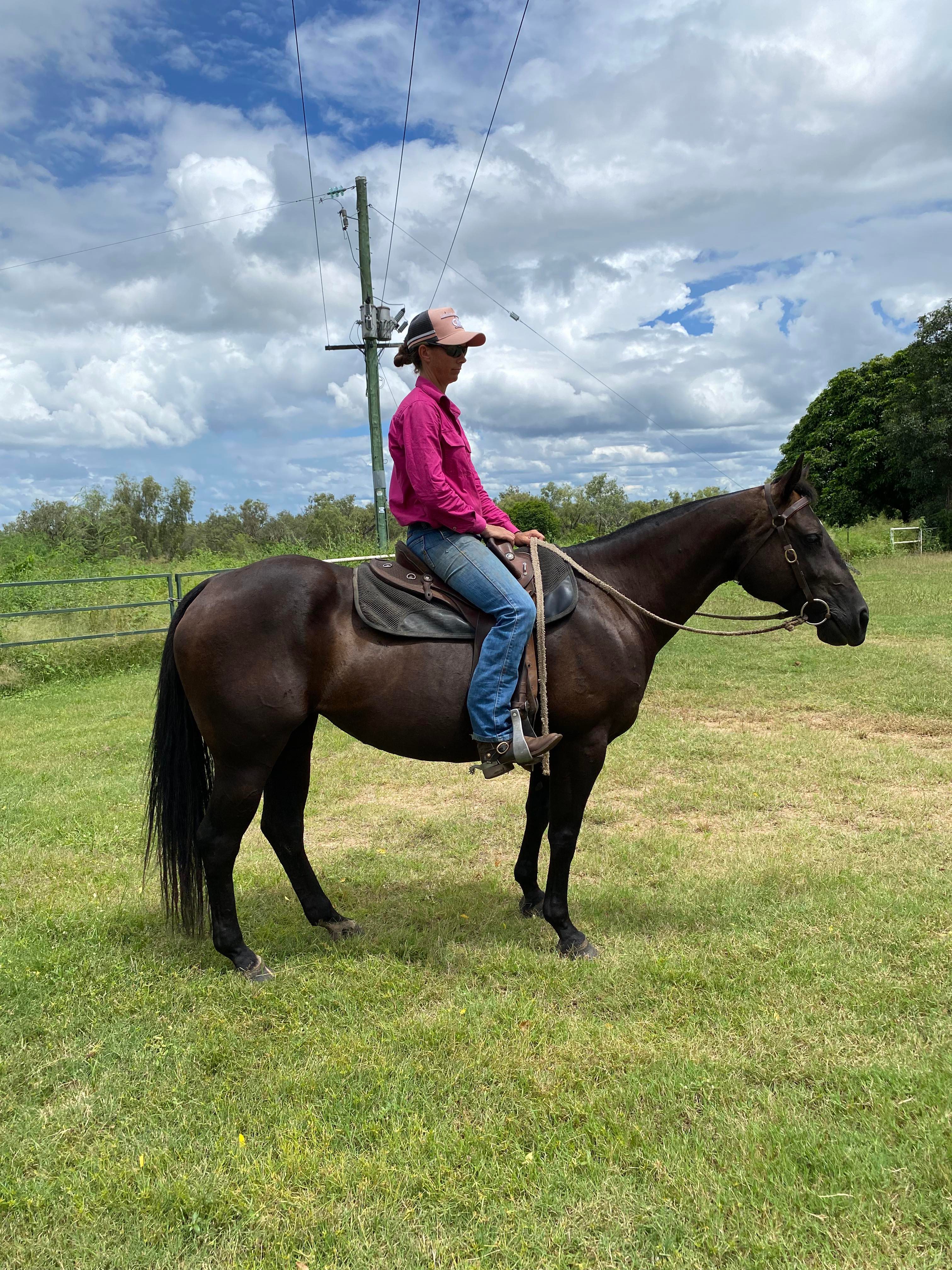 Novice mare, drafted last 2 seasons. Easy to do, good to travel, clip, shoe. Doesn't need alot of work, mustered with a 12 and 14 yo, suit lady/competent teen. Handy yard mare, throw her on the truck and go.