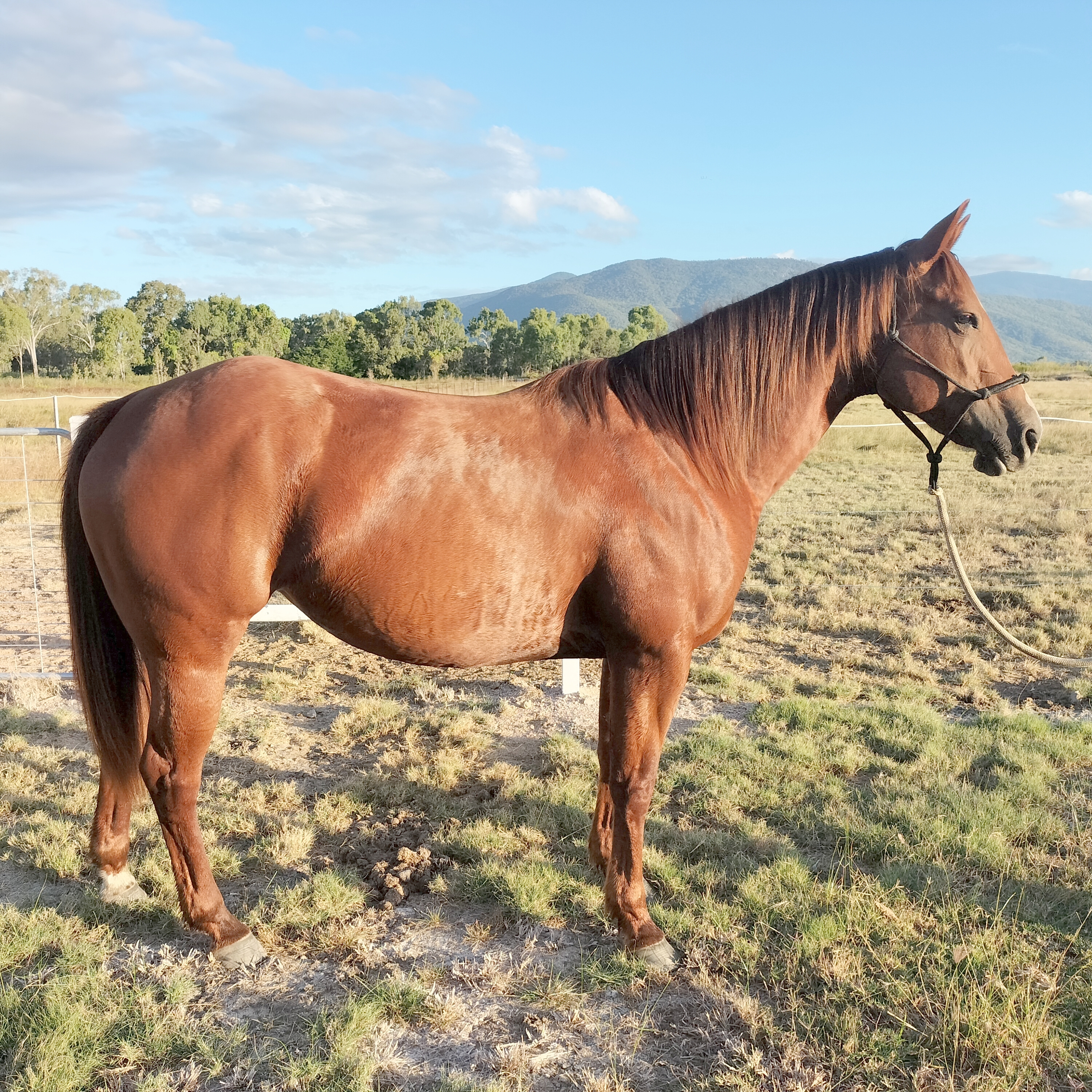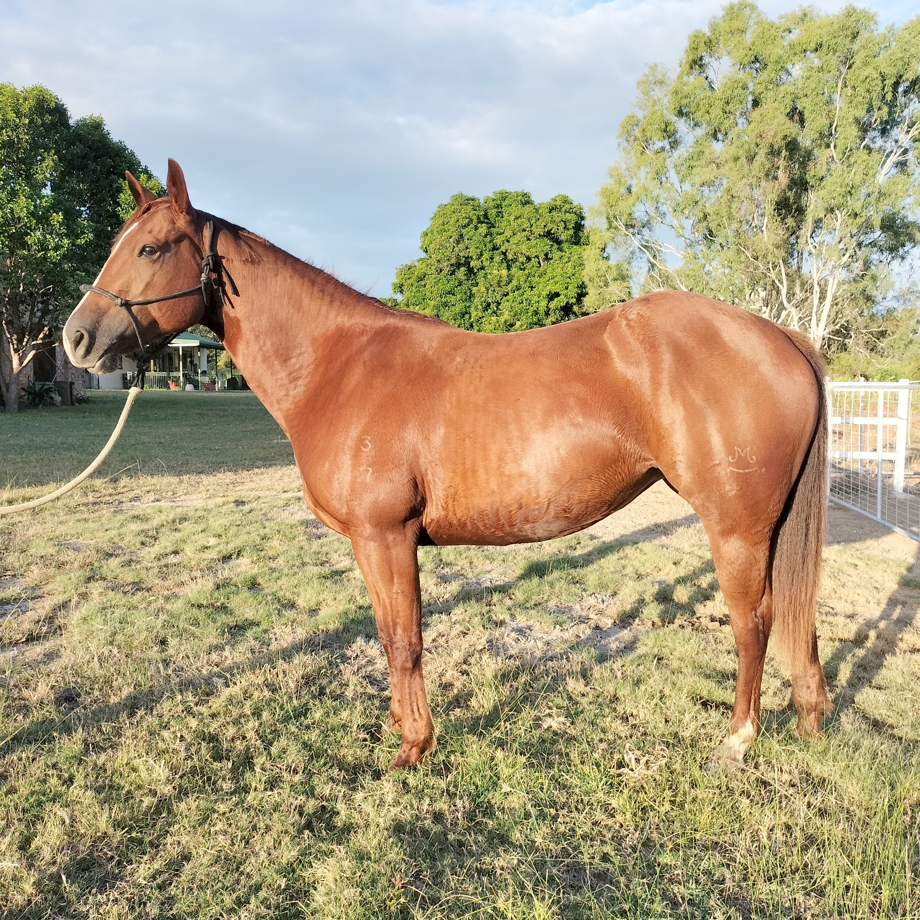 Chex is a lovely horse with no buck or vices. Started by Kenny Daniels she has progressed into a nice, quiet, soft athletic type of horse. Showing heaps of natural agility she will excel in any discipline.