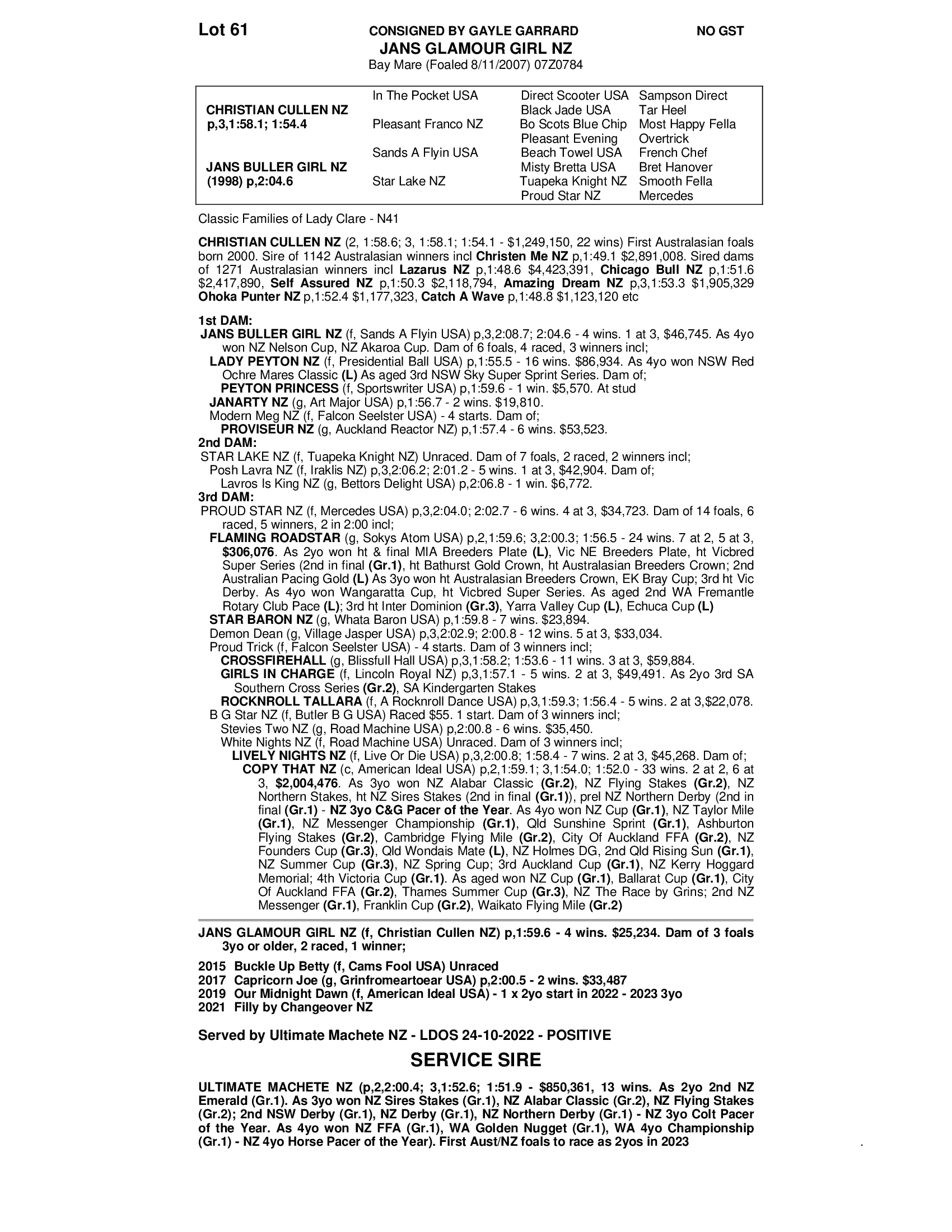 Pos+ in foal ULTIMATE MACHETE NZ. LDOS 24 October 2022. Service fee paid in full.