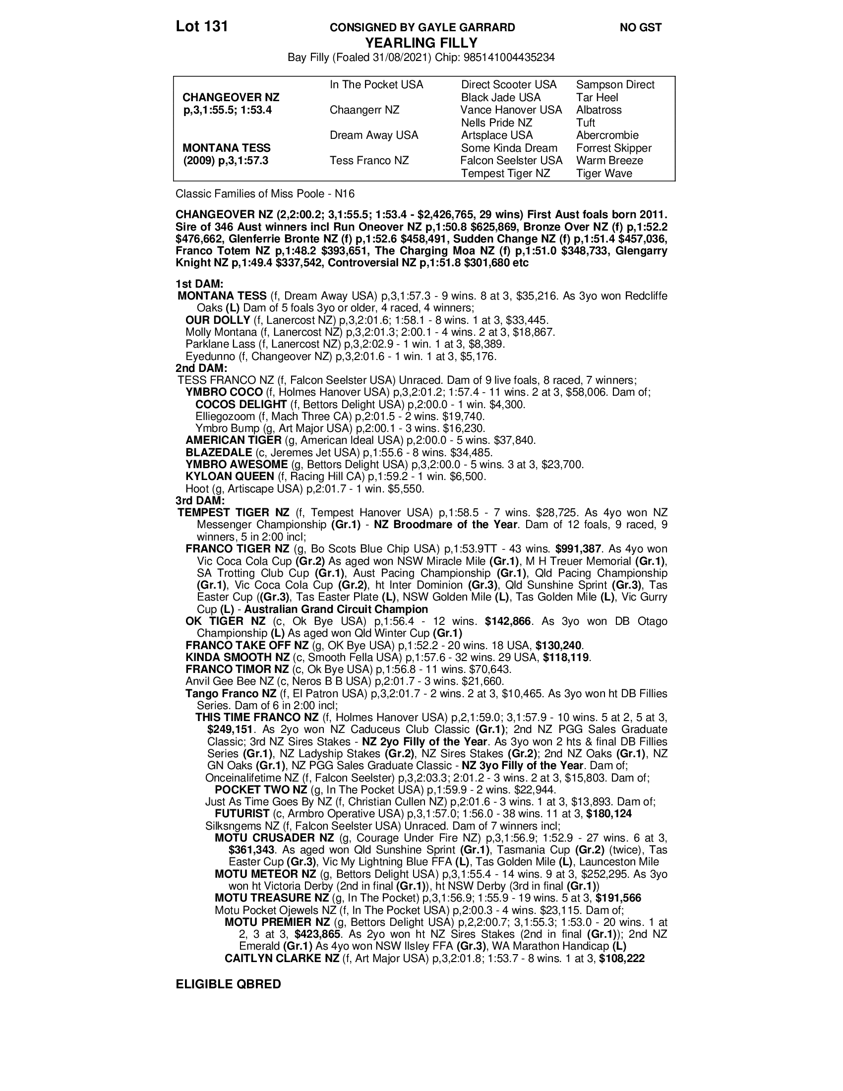 MONTANA TESS - 39-9-2-6 1:57.3 Winner Redcliffe Oaks. Dam of 6. 4 racing age. 4 winners.