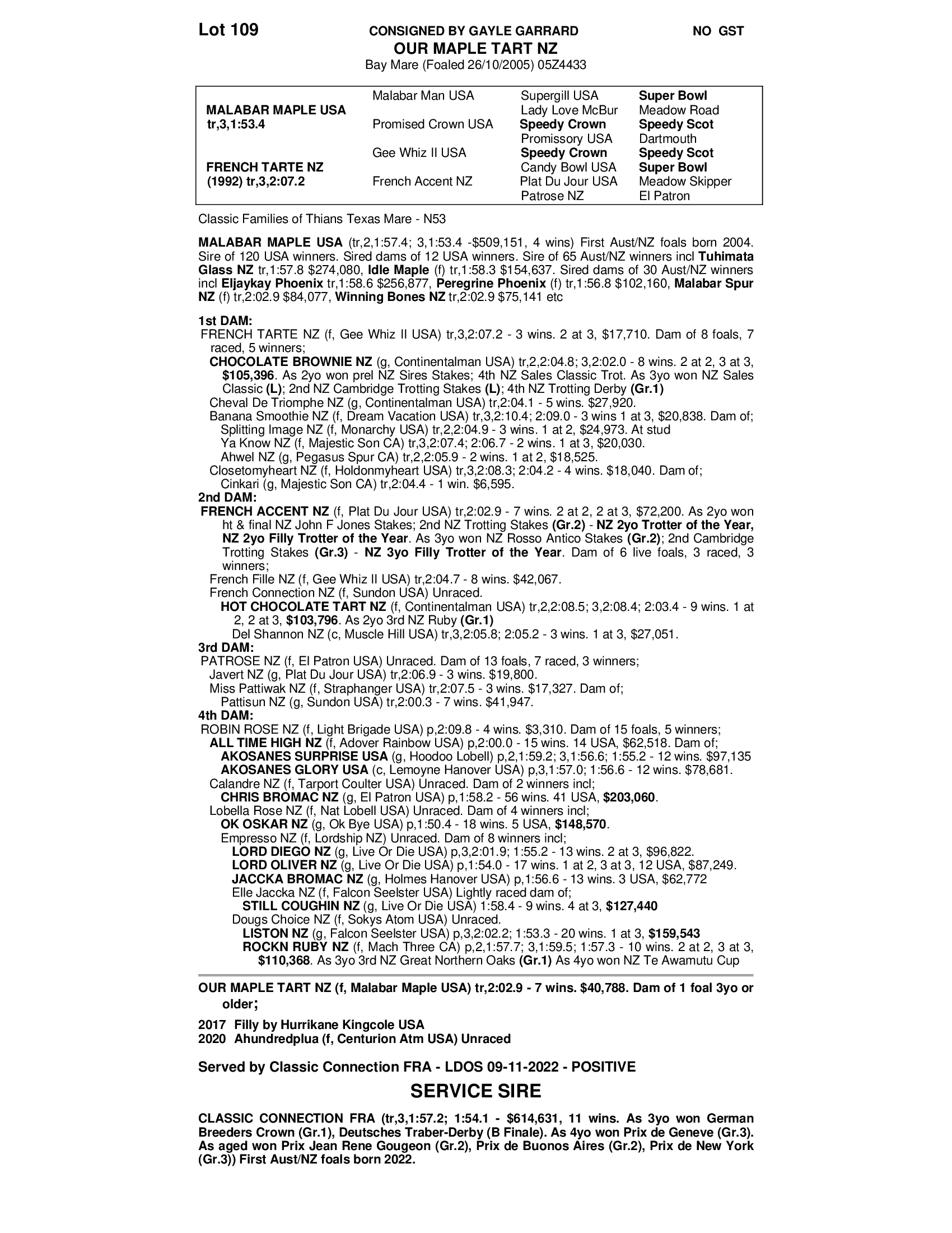 Pos+ in foal - CLASSIC CONNECTION FRA.  Service fee paid in full.