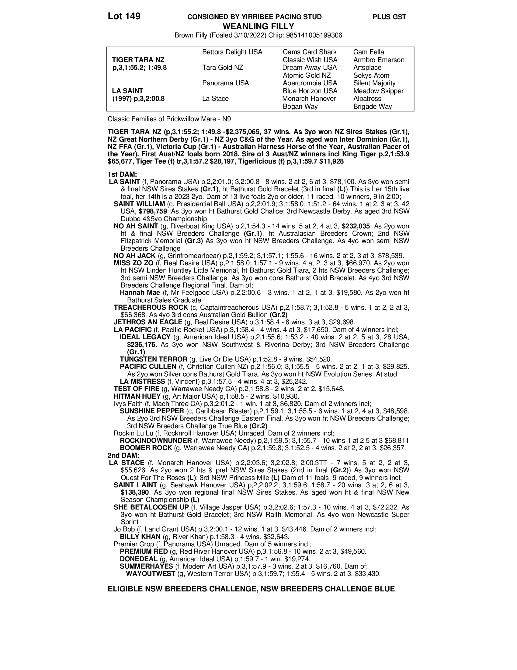 2022 FILLY OUT OF LA SAINT