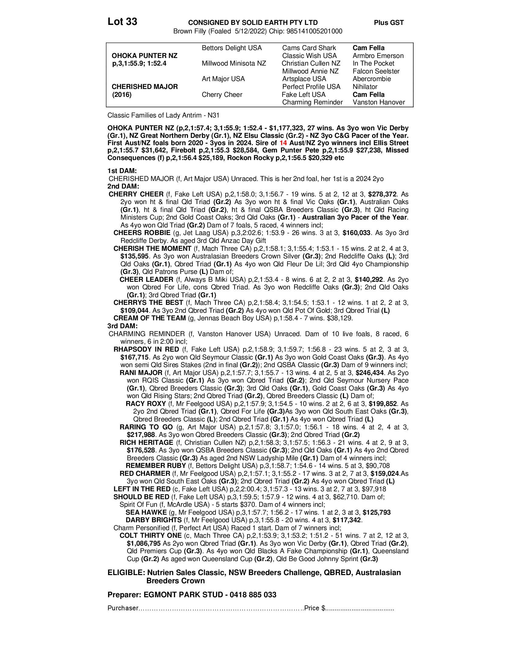 2022 FILLY OUT OF CHERISHED MAJOR