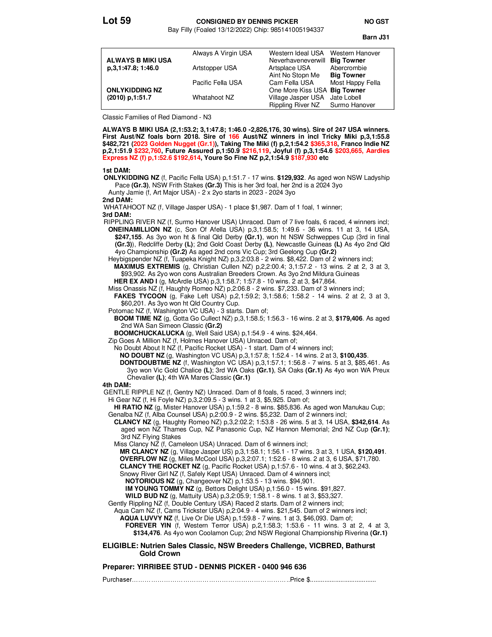 2022 FILLY OUT OF ONLYKIDDING NZ