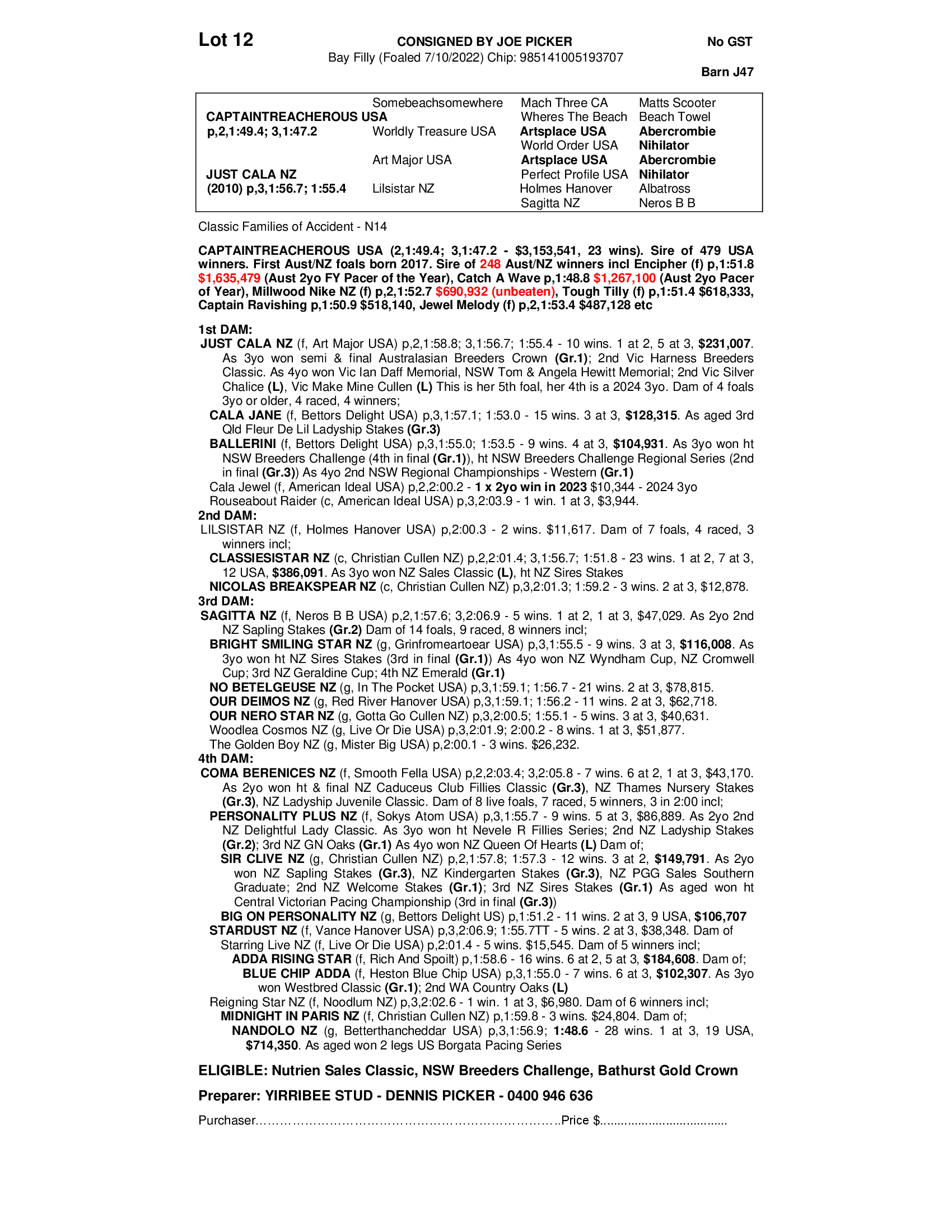 2022 FILLY OUT OF JUST CALA NZ