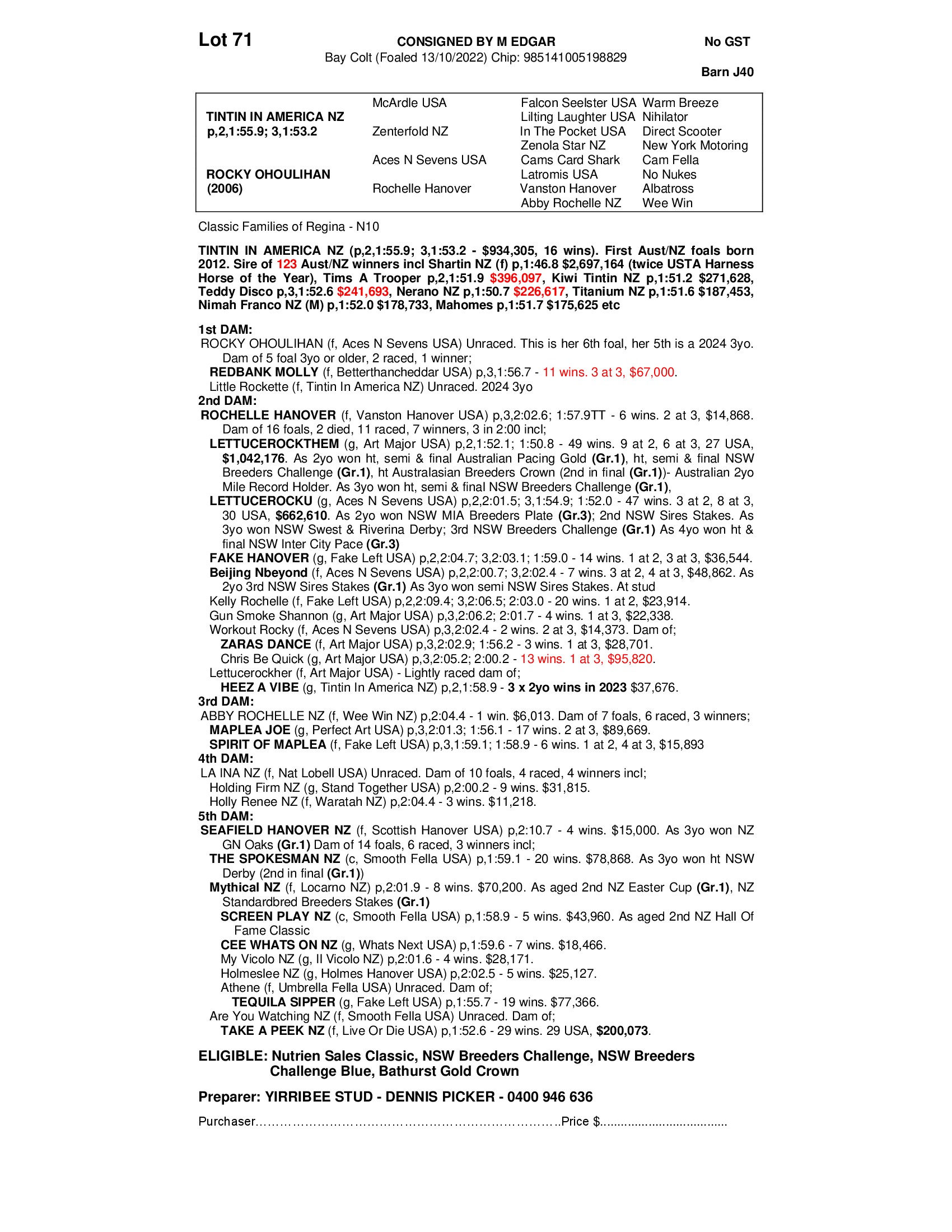 YIRRIBEE PACING STUD