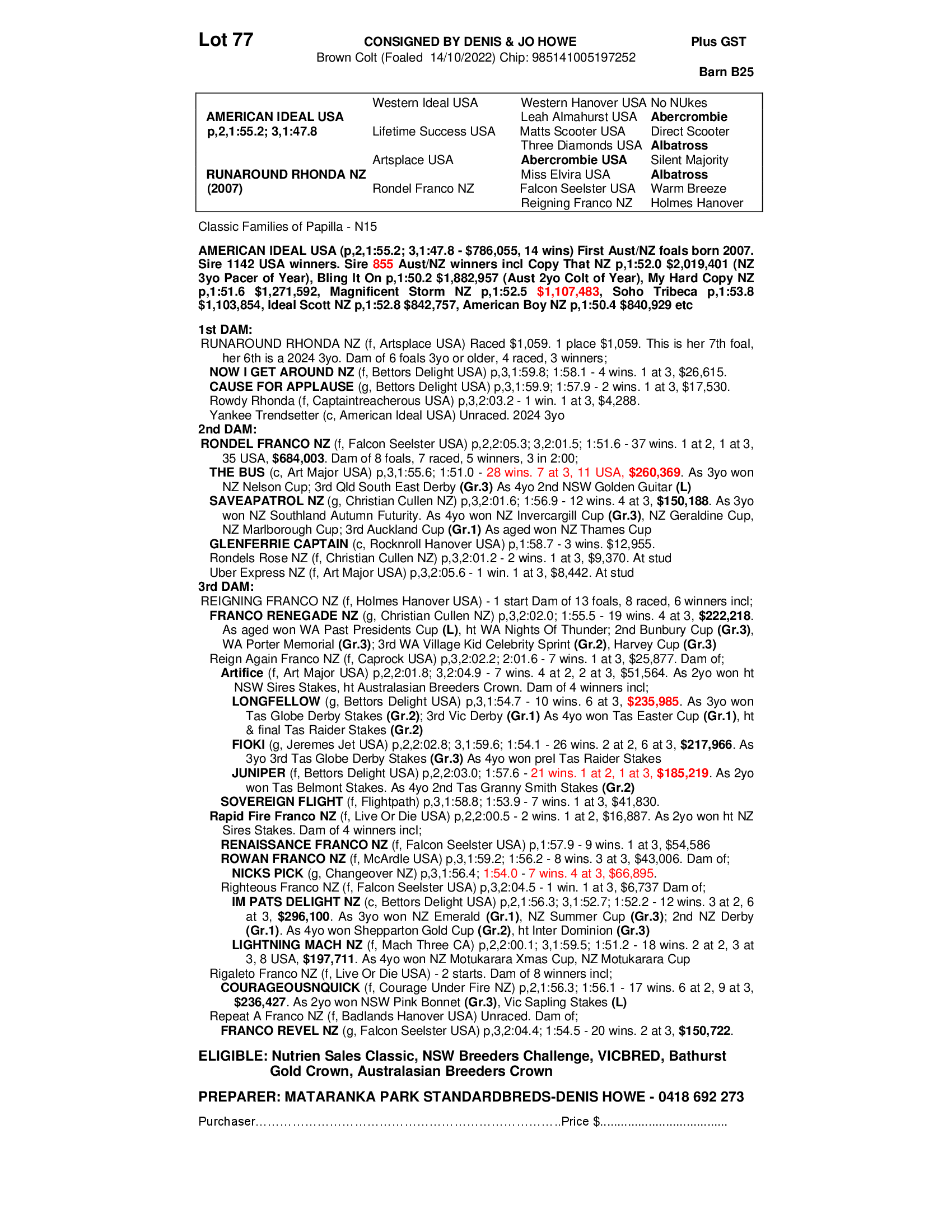 MATARANKA PARK STANDARDBREDS-DENIS HOWE