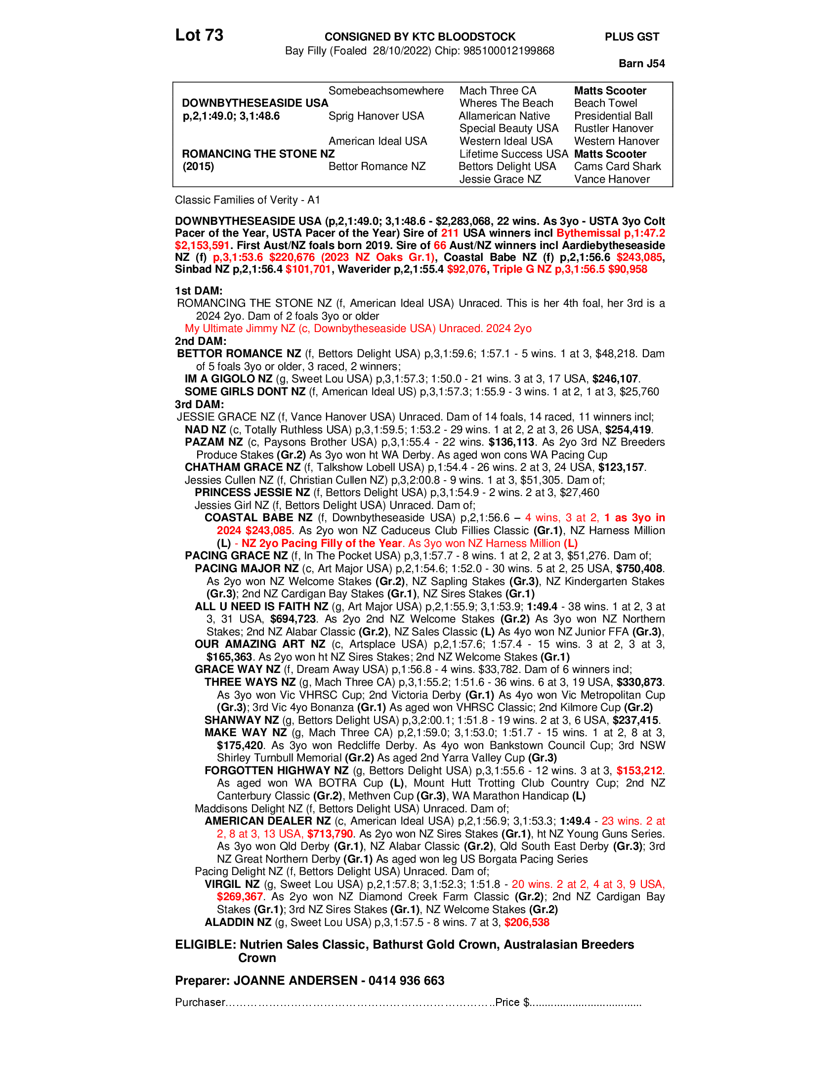 This filly comes from a family of superstars including Pacing Major 30 wins $750,408, All U Need Is Faith 38 wins 1.49.4 $694,723, Three Ways 36 wins $330,873 & American Dealer 1.49.4 $675,730