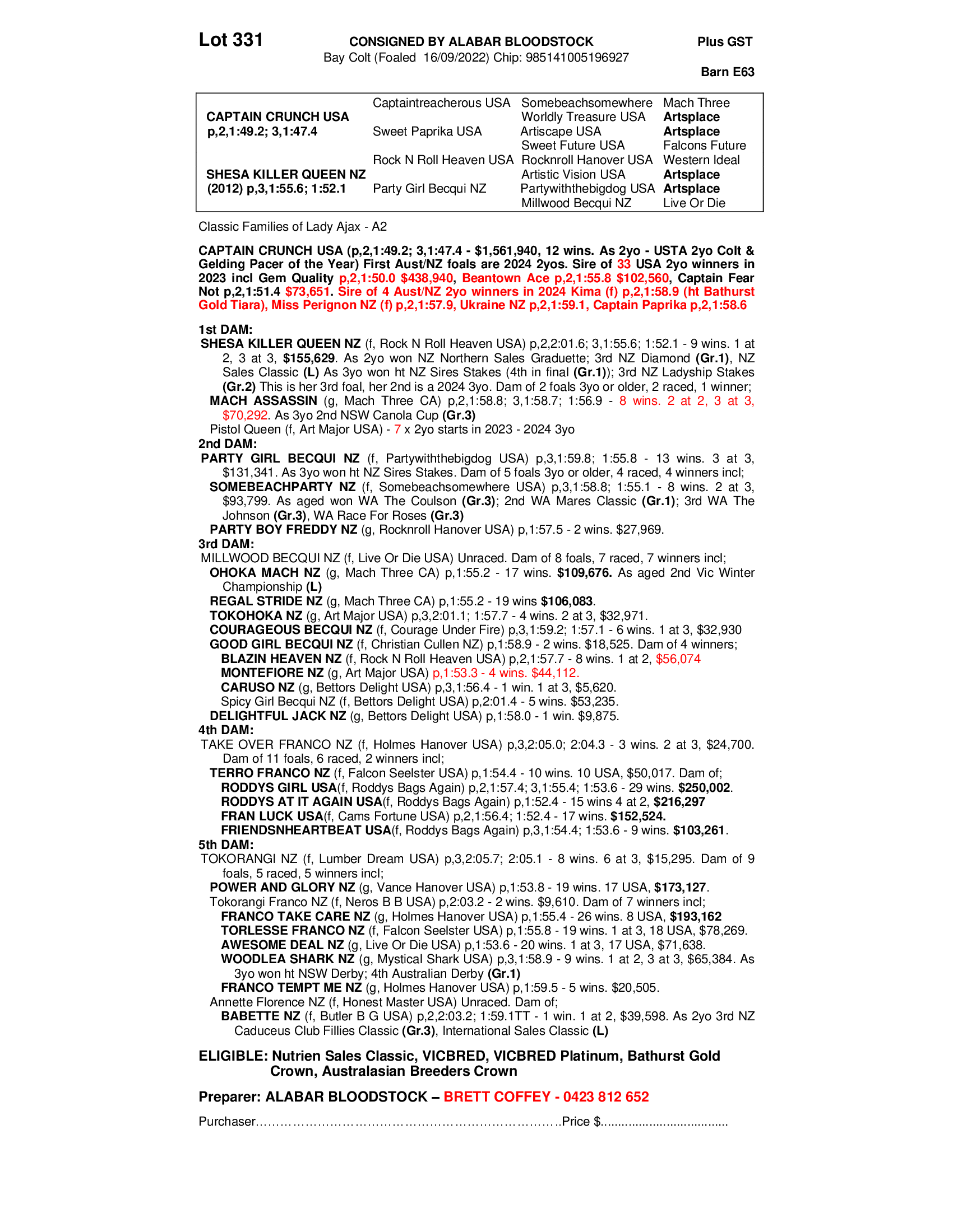 2022 COLT OUT OF SHESA KILLER QUEEN NZ