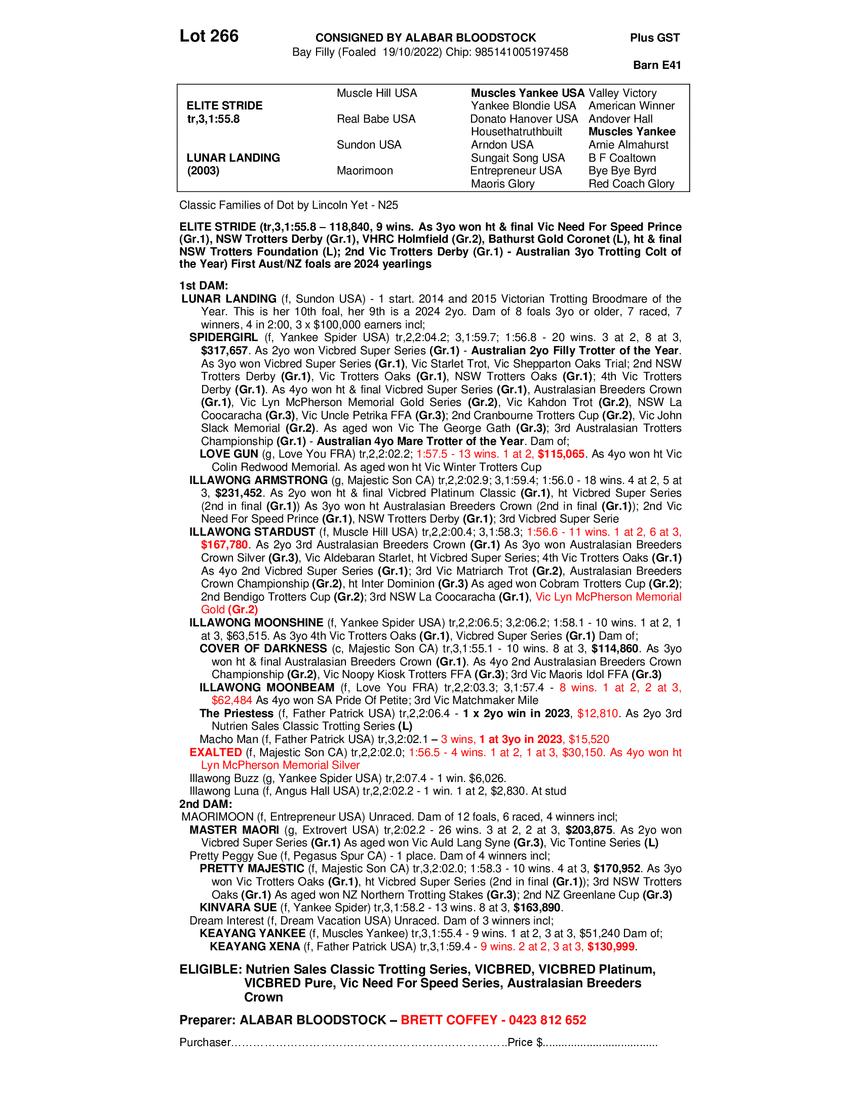 2022 FILLY OUT OF LUNAR LANDING