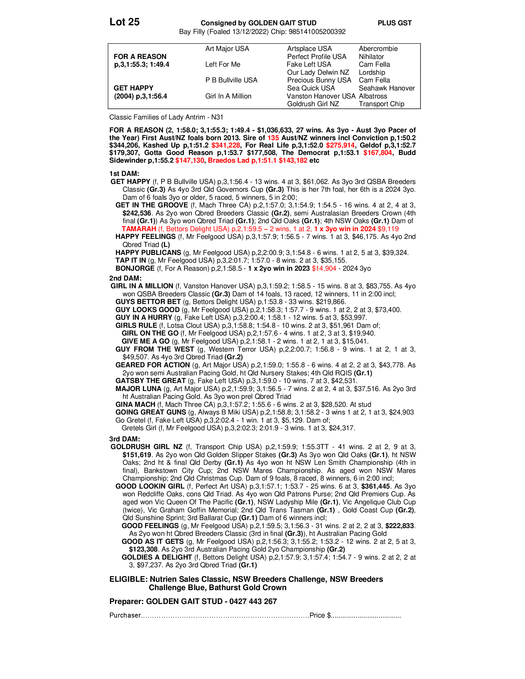 2022 FILLY OUT OF GET HAPPY