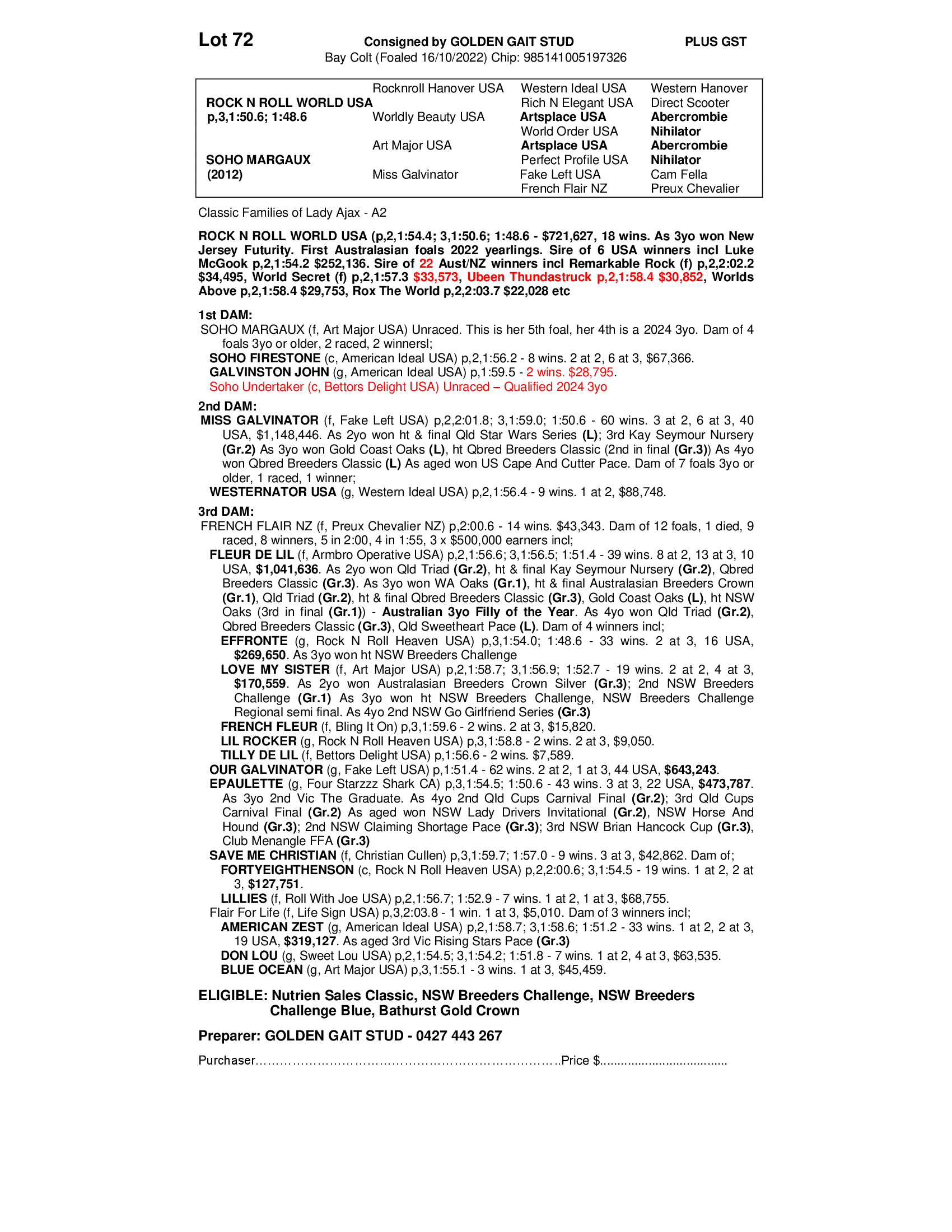 2022 COLT OUT OF SOHO MARGAUX