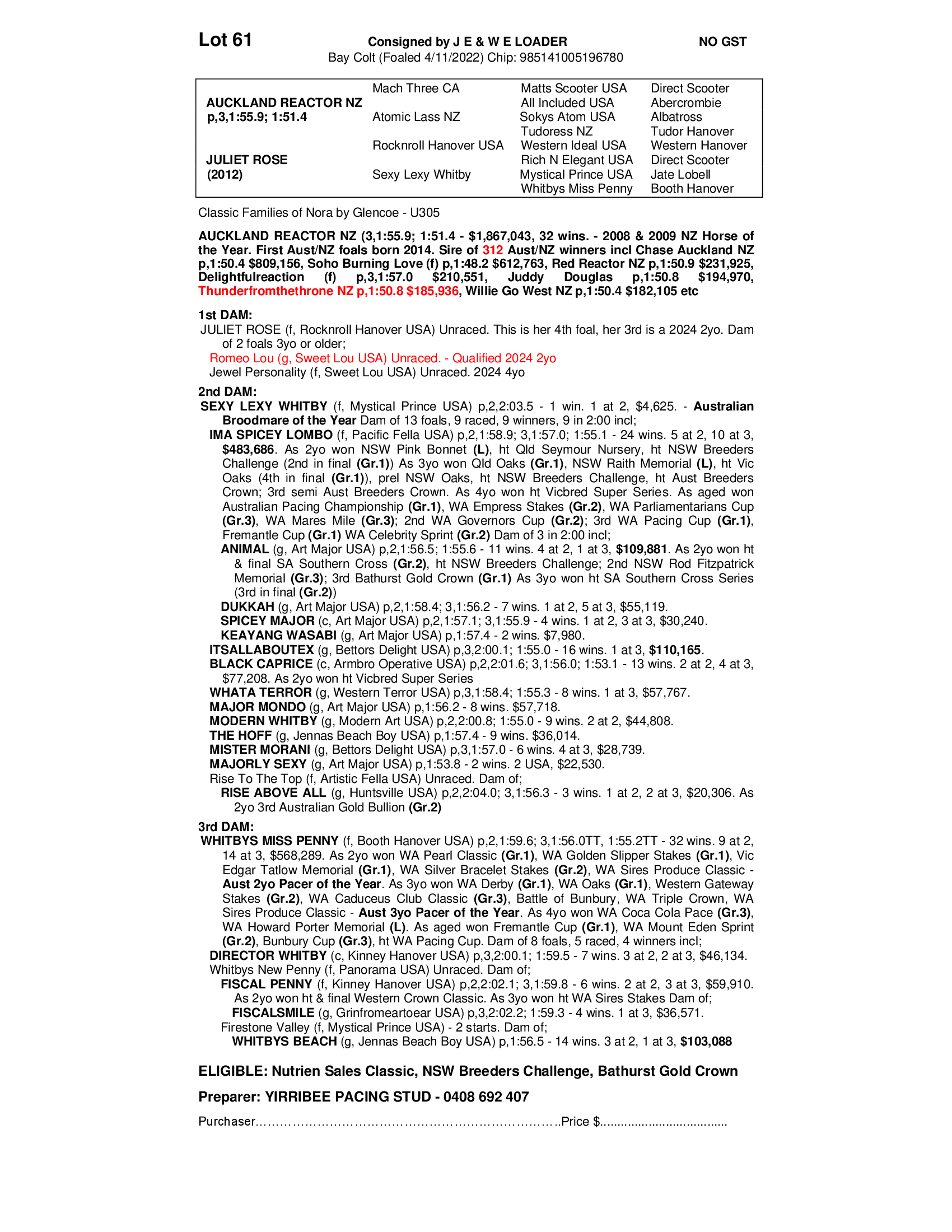 YIRRIBEE PACING STUD - DENNIS PICKER