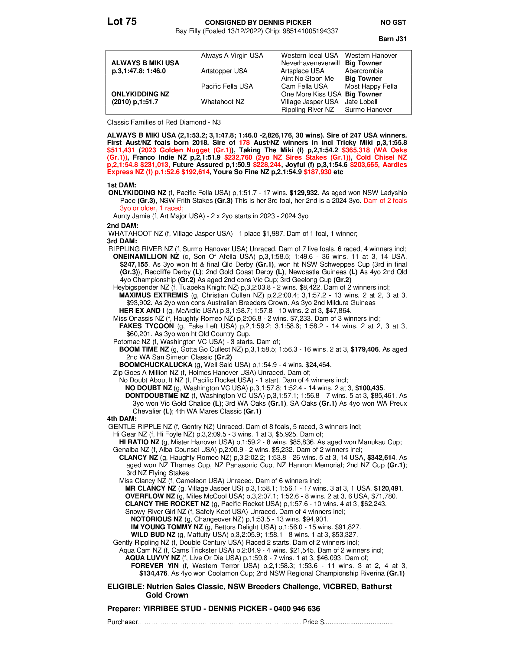 2022 FILLY OUT OF ONLYKIDDING NZ