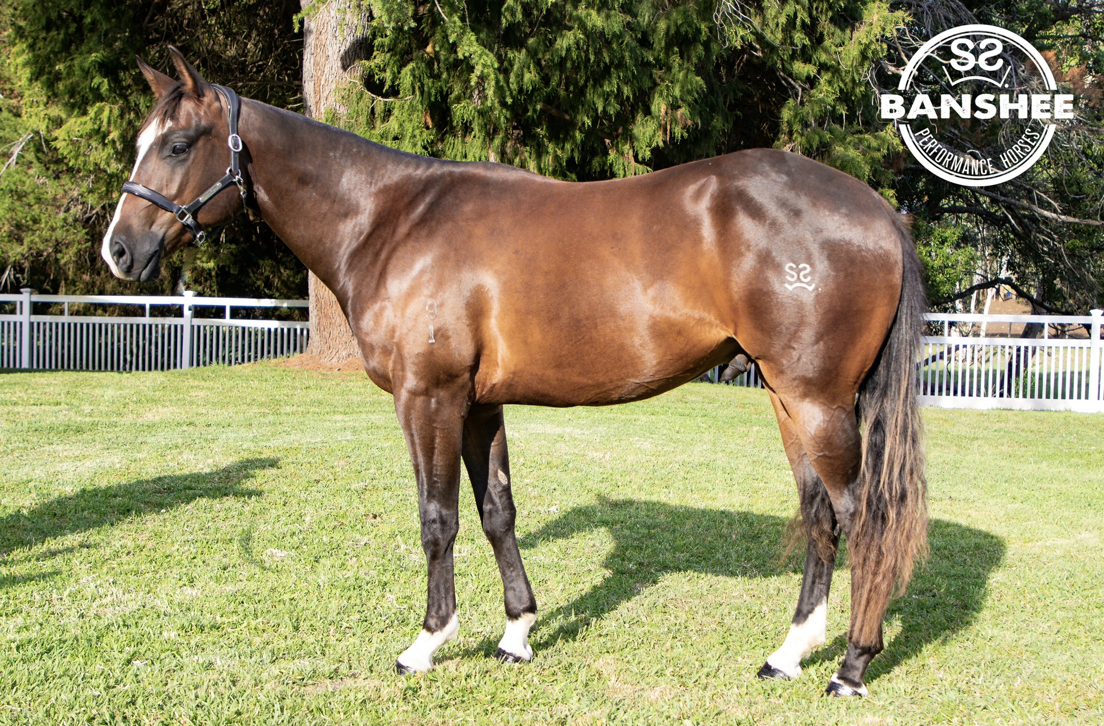 A striking gelding from a standout performance family on both sides of his pedigree. He will be a good strong gelding, naturally quiet and learns quickly. Has a great learning mindset and tries hard to please.