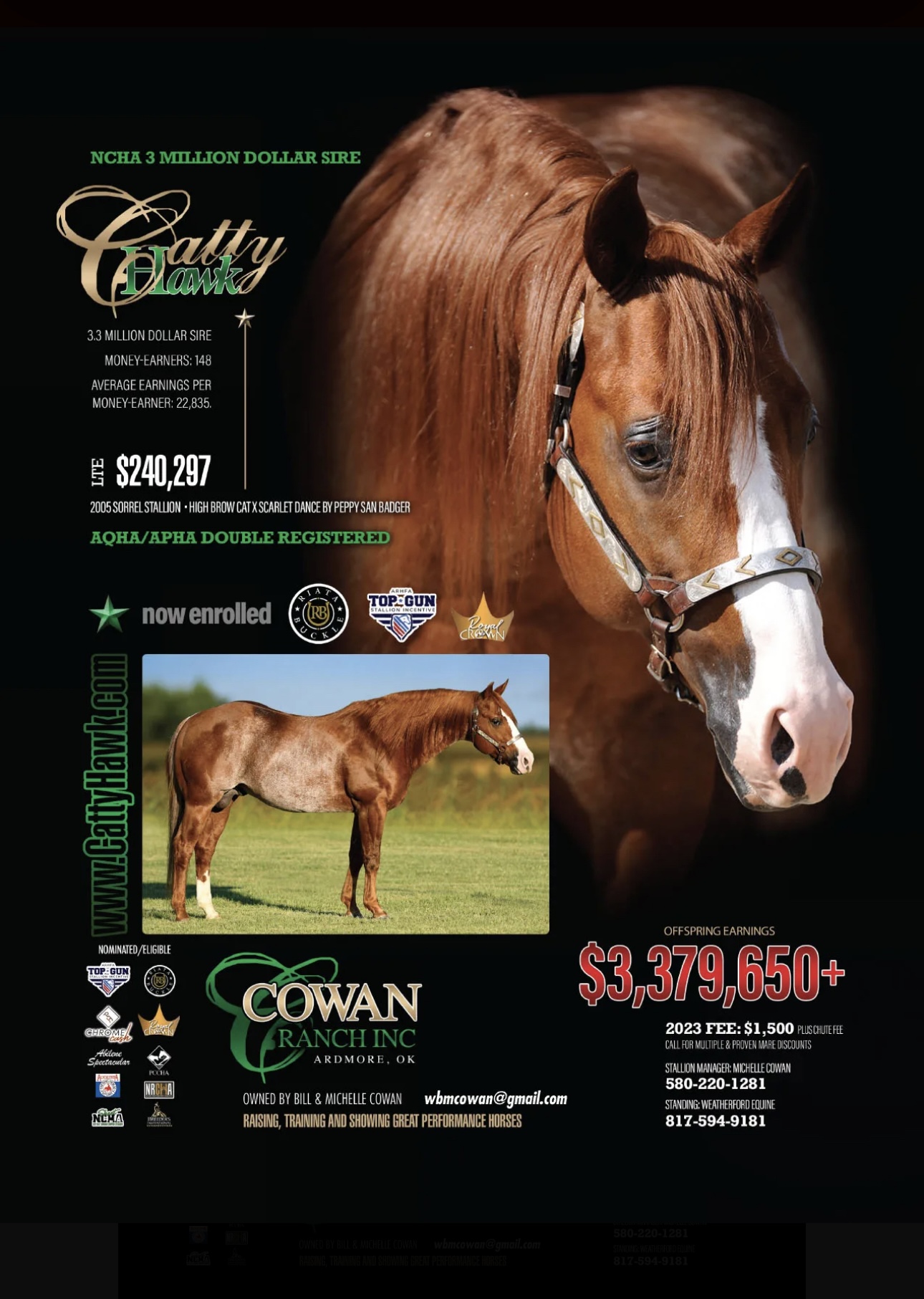 Sire: Catty Hawk (USA) 3 Million Dollar Sire with LTE of $240,297.00. Details in Photos.