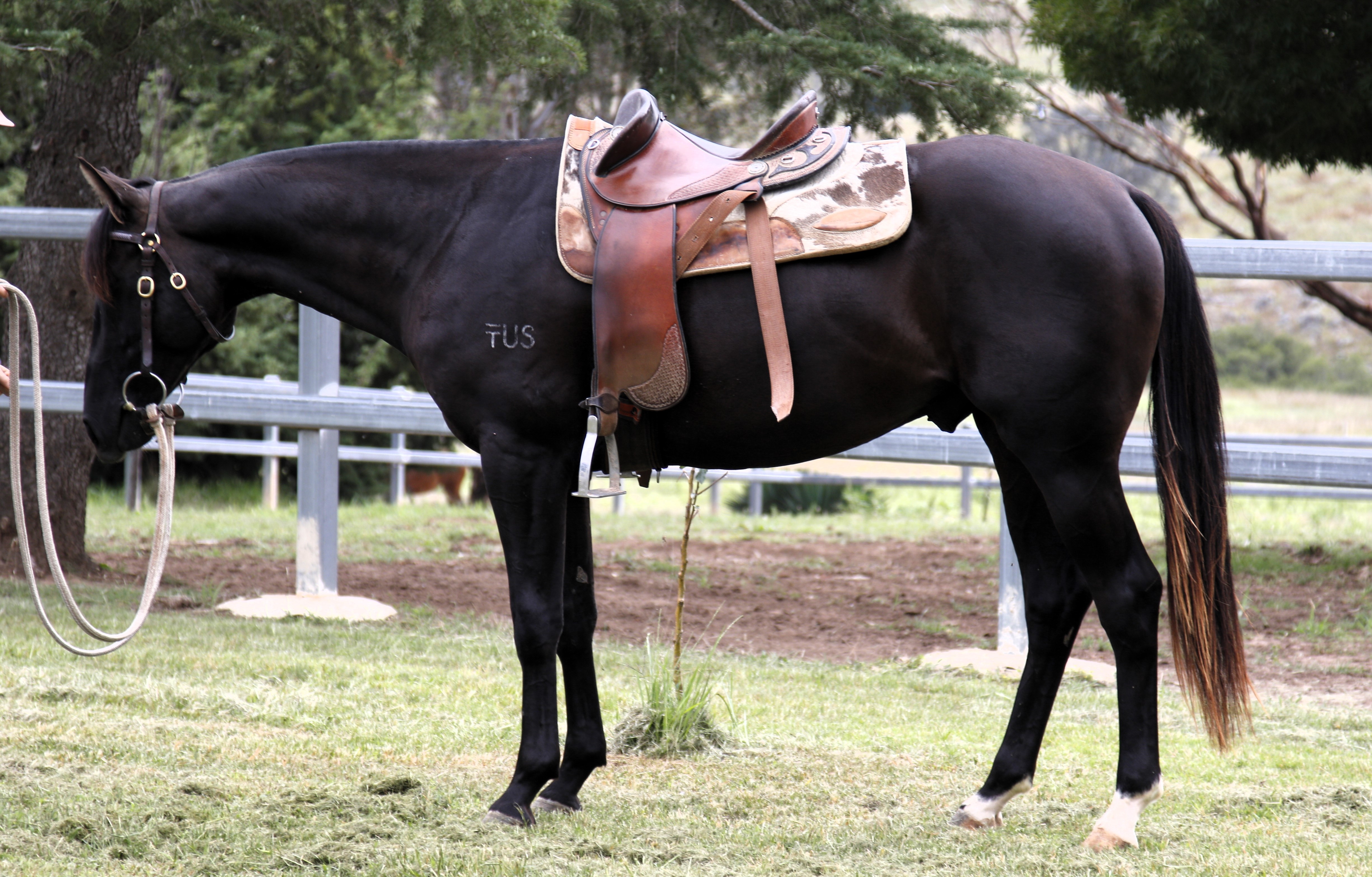 Pretty Boy Floyd, a well balanced black colt, striking in appearance, temperament, movement, speed and athleticism. Started in September, broke in very soft. Will be working on bison by sale time. Has been bred to throw true to type.