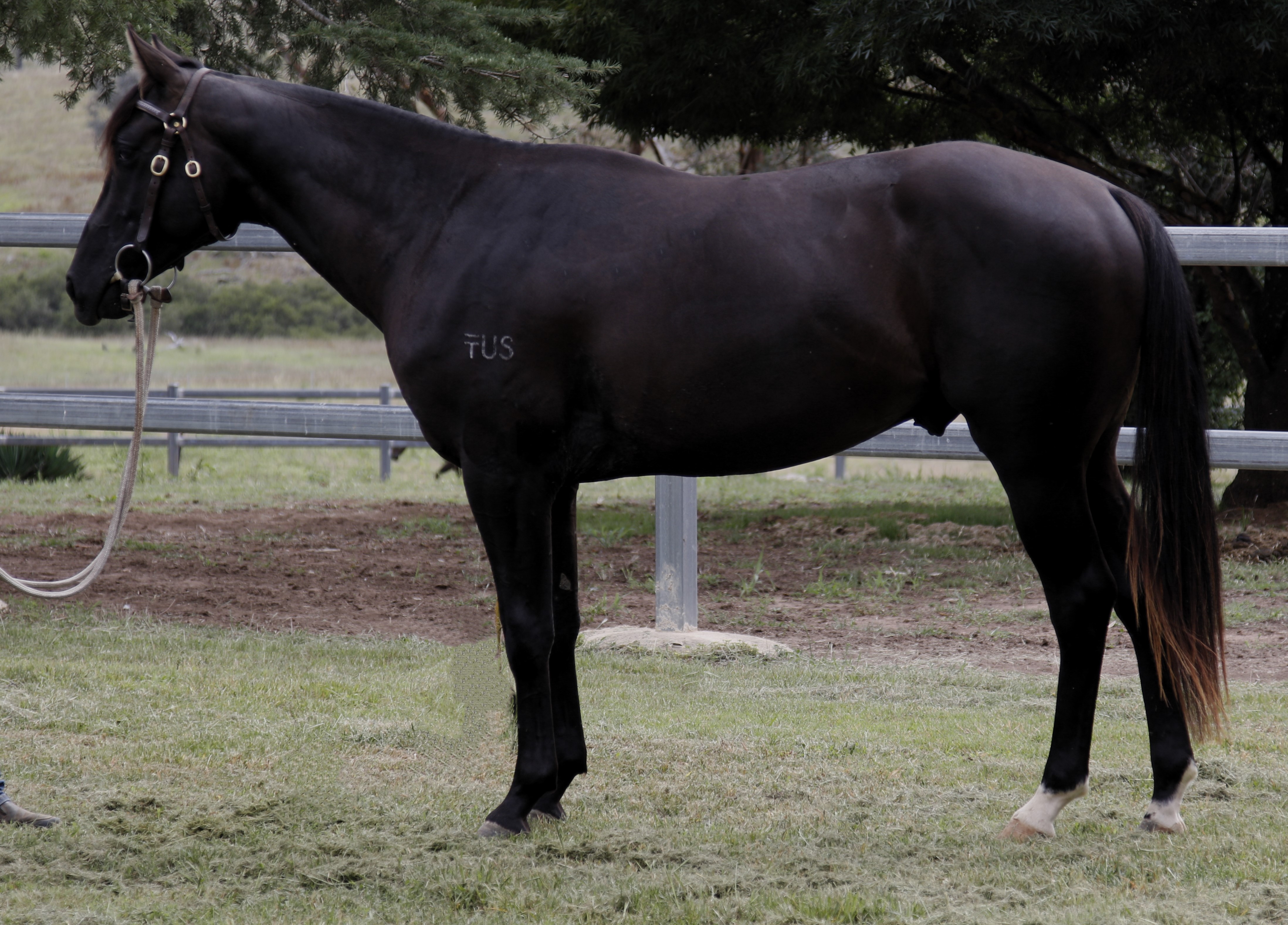 Pretty Boy Floyd, a well balanced black colt, striking in appearance, temperament, movement, speed and athleticism. Started in September, broke in very soft. Will be working on bison by sale time. Has been bred to throw true to type.