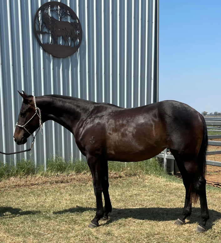 An attractive well grown athletic filly out of a well performed mare. She was broken in by Ben Maytom and will be lightly started on cattle by the time of the sale. She could excel in any chosen discipline.