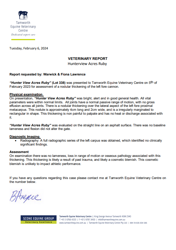 Ruby has a small lump on near side knee, please see in photos vet report.