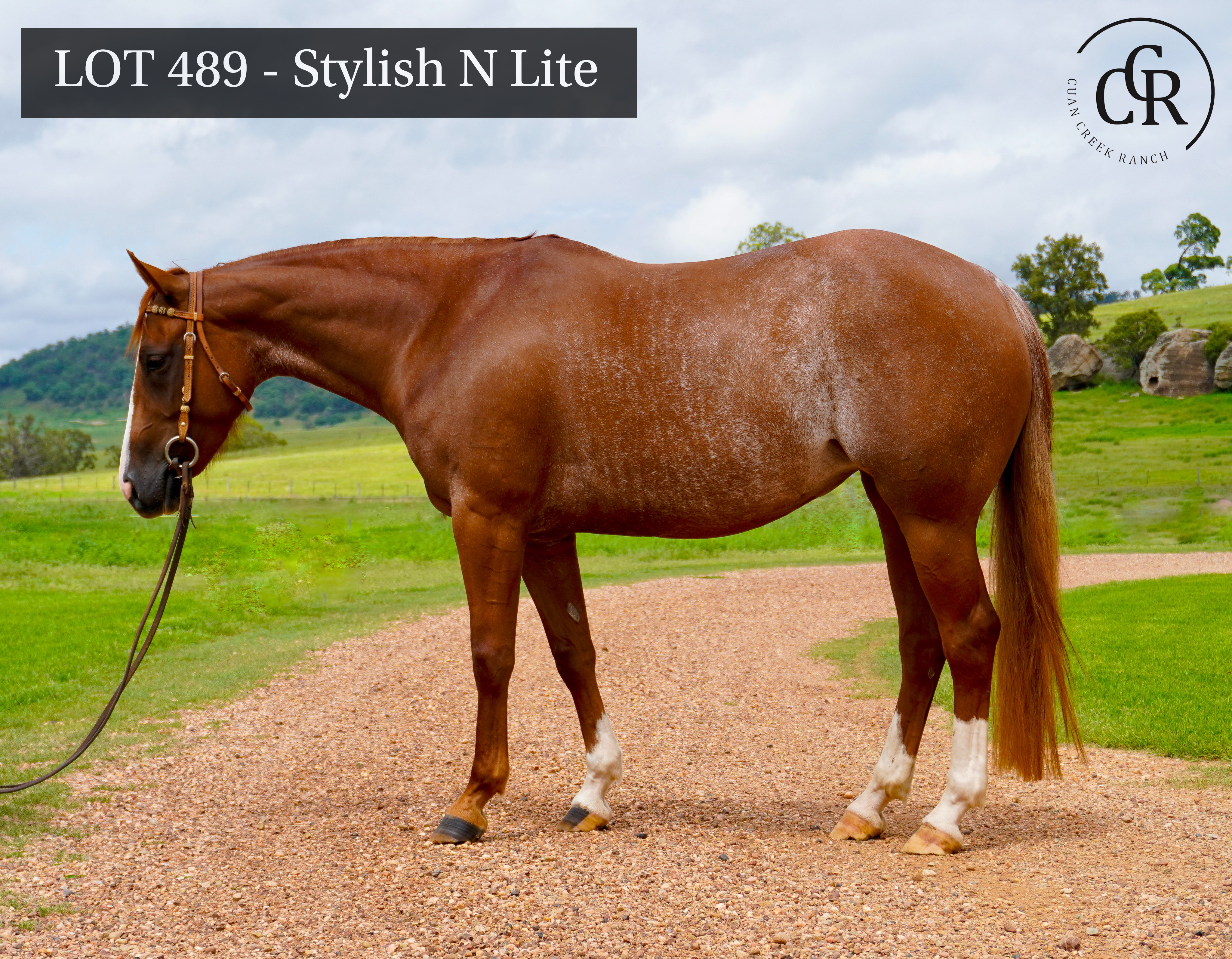 Stylish is a quiet, easy going mare, who was broken in by Saunders Performance Horses in September/October 2021 and then ridden as a 2 year old by Marsh Carney mustering paddocks on the farm. She missed the NCHA aged events due to lack of time and was sent to Grant Quigley for 12 months of cutting training.