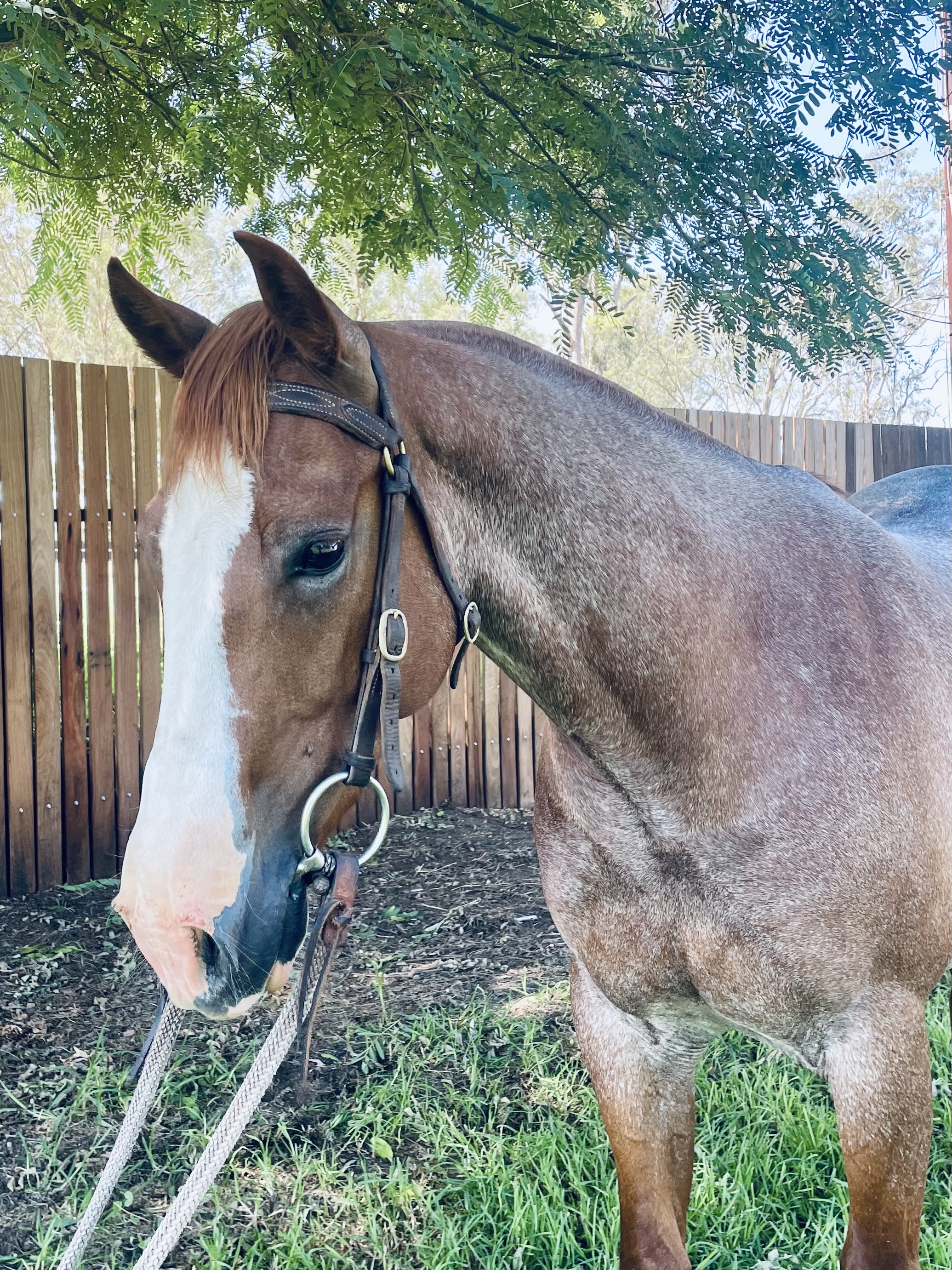 Barney is a nice roan gelding who has had plenty of mustering and work on cattle and bison. He is the first foal out of Miss Ducelena an NCHA money earner and winner of 10 open drafts plus multiple ladies. He is by Metallic Rebel, an up and coming super sire in thh USA. Barney has no vices and is ready to go.