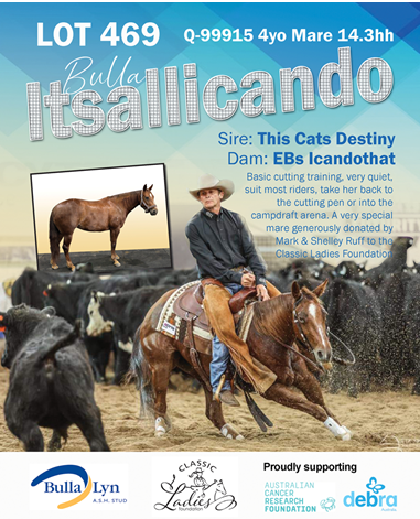 Lot 469 go directly to DEBRA Australia (Epidermolysis Bullosa EB) & Australian Cancer Research Foundation.