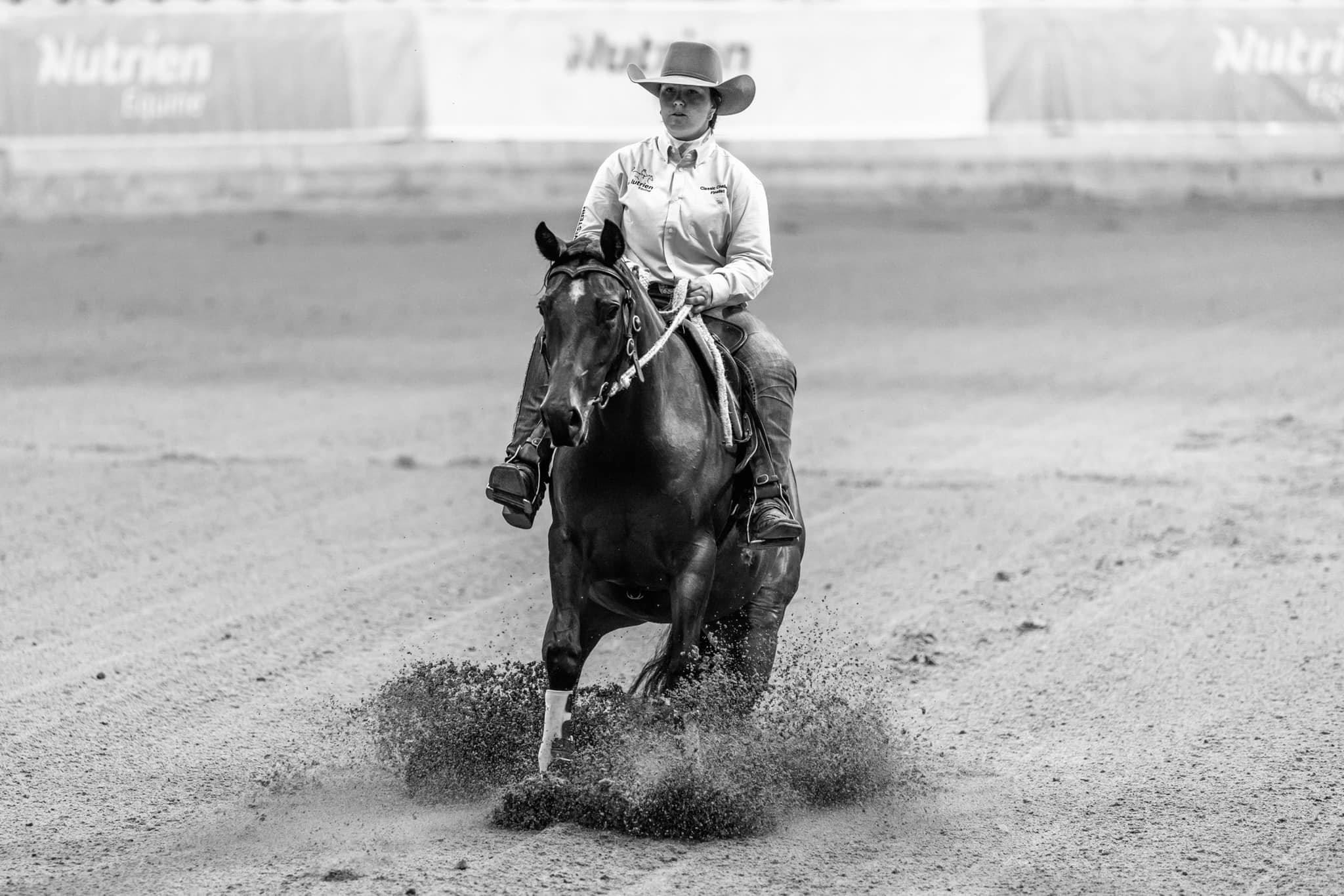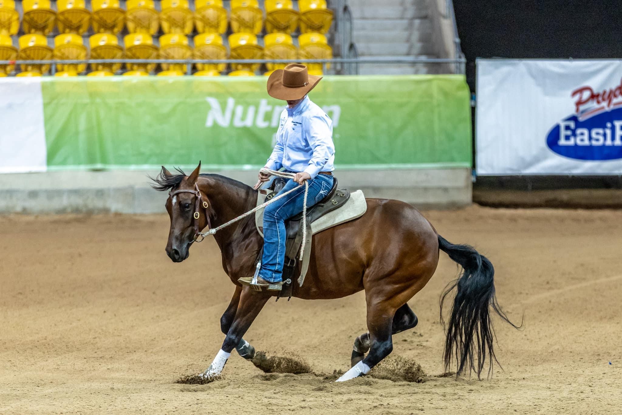 He is a 3/4 Brother to the very well performed Beniah Mare “Two Beneficial” (pictured under saddle with owner Kathryn Hengstberger) who was the 2023 Nutrien Classic Sale Young Guns Incentive Challenge Champion. 2022 Nutrien Classic Sale Young Guns Incentive Challenge Reserve Champion. Two Beneficial has also gone on to win a Novice Draft, place in Open Drafts and consistently run scores of 90 & cutouts of 23.