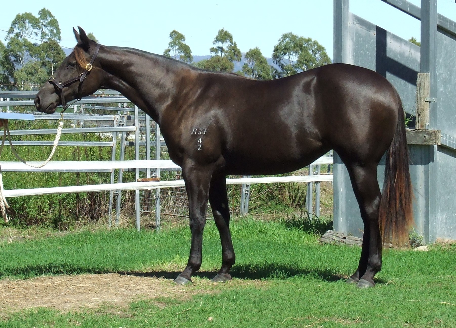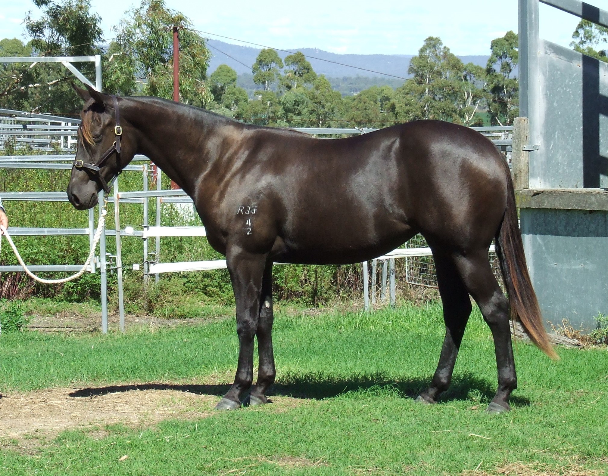 Arden might be a smokey black or black buckskin, but we do not colour test and have registered her as black. Her sire is palomino, dam is black.