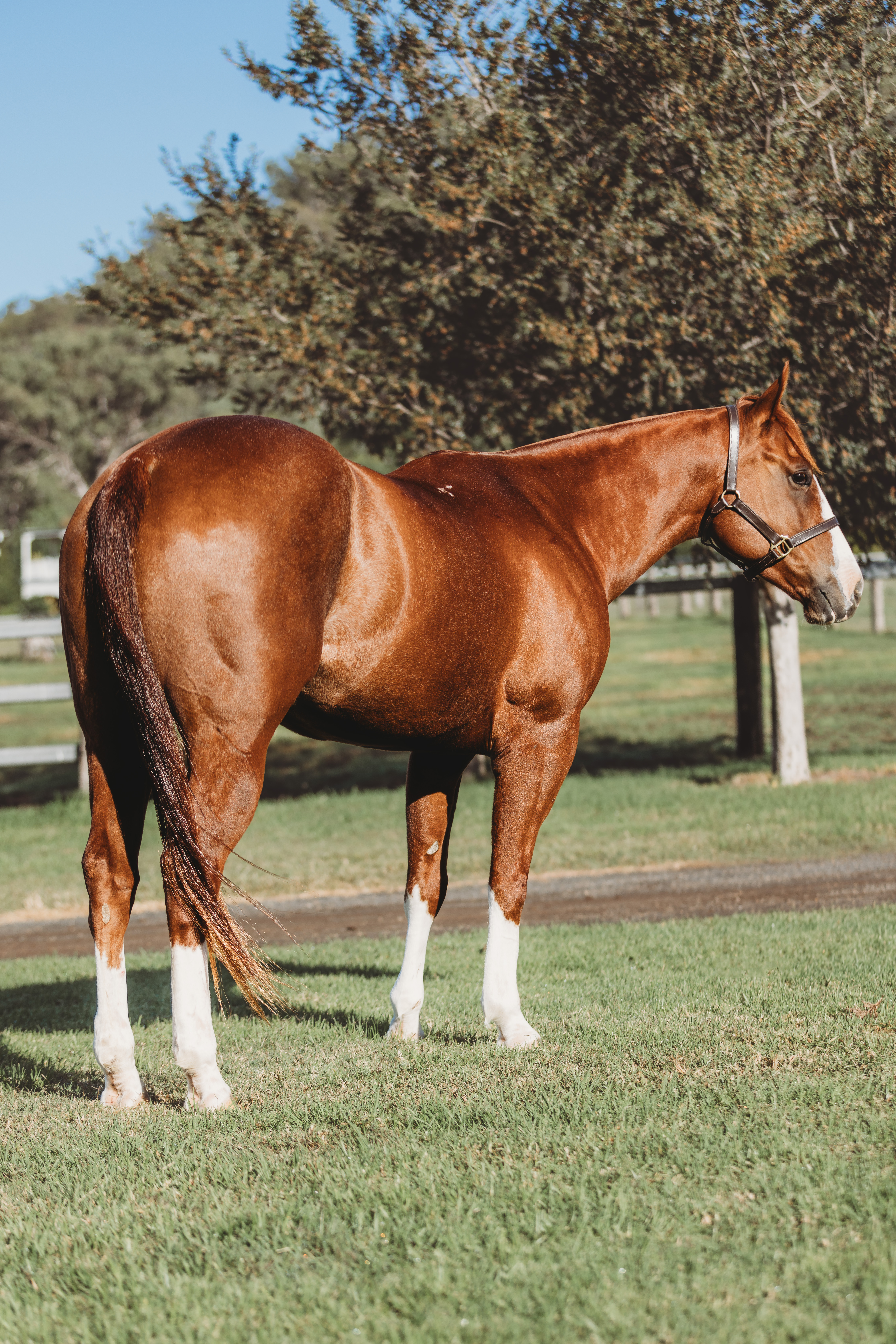 Oakey is a gentle giant. He will find you in the paddock. He's a really easy going very quiet guy. Had limited recent outings due to owners commitments. Has been exposed to feedlot work, competed in horse sports/gymkhanas, challenges, mustering, and general riding. Was lightly campaigned as a 4 yr old placing in challenges/drafts with a very competitive juvenile. Phone Darby 0429 303 075