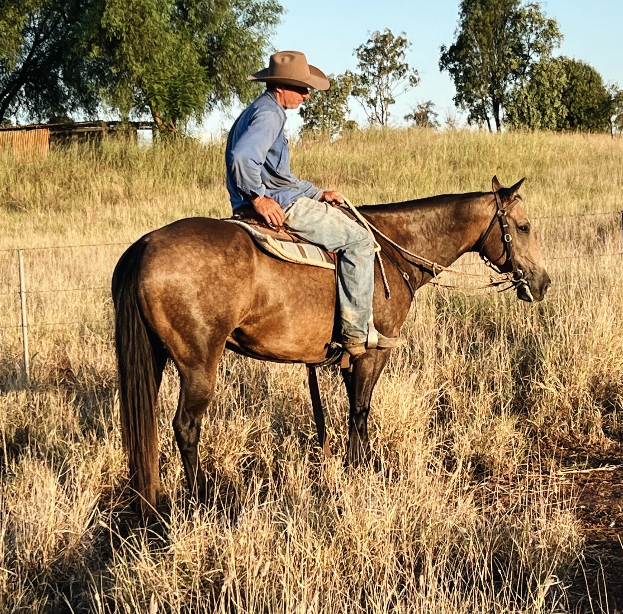 He has been used extensively for station / mustering work in a proper stock camp. Excellent work horse. Surefooted. Not matey. Open any big or heavy gate, will shoulder in for tricky latches in corners & stand patiently for latches to be done up without marching off. Can crack whip off him. Ride in his own or with a group.