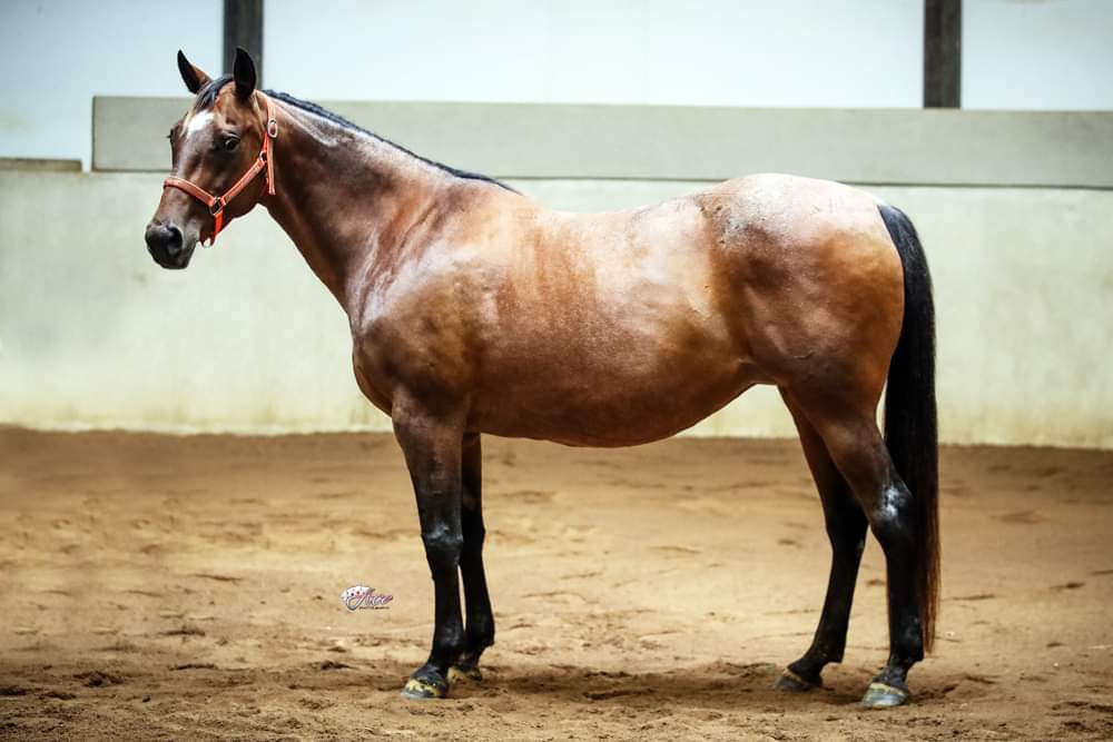 A hard to find Pepto mare, lots of size and of course bay roan, in foal to No Moore One Moore, NCHA Open Derby Champion also sired by Peptos Stylish Oak (imp) giving this resulting foal a double cross of Peptos Stylish Oak.  I imported her dam as she was a full sister to Miss Shorty Lena, a great show mare in her own right but also she went on to be a leading producer of NCHA earners in the USA.  We sold her last foal for $25k as a weanling in 2023. As this mare was up on a station for a good part of her life, she was not given a chance to produce by leading sires but she still has a positive future as a brood mare with many foals left in her for the future.