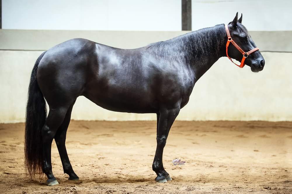 A lovley young mare, trained for cutting so can be put back into work if you wish, we sold her 2 year old filly by Pepto for $25k and she showed great potental on cattle but she was lost to colic. We are keeping her yearling filly by Twice In A Blue Boon who we losy last year. This mare is trained on cattle and can be brought back into work should you wish. I showed Freckles Bonita Two to Reserve Champion in the NCHA Open Derby and she went on to be a leading producer of Cutting horses as the dam of QXH Bonitas Two sired by Peptos Stylish Oak so the resulting foal here will be a 3/4 sister to QXH Bonitas Two. The Hysdrive mares are proving them selves as great producing mares so a young mare like this in foal to Pepto should not be missed. Update, FQH Midnight Drives half sister just won the Open Cutting Derby at the 2024 NCHA National Finals.