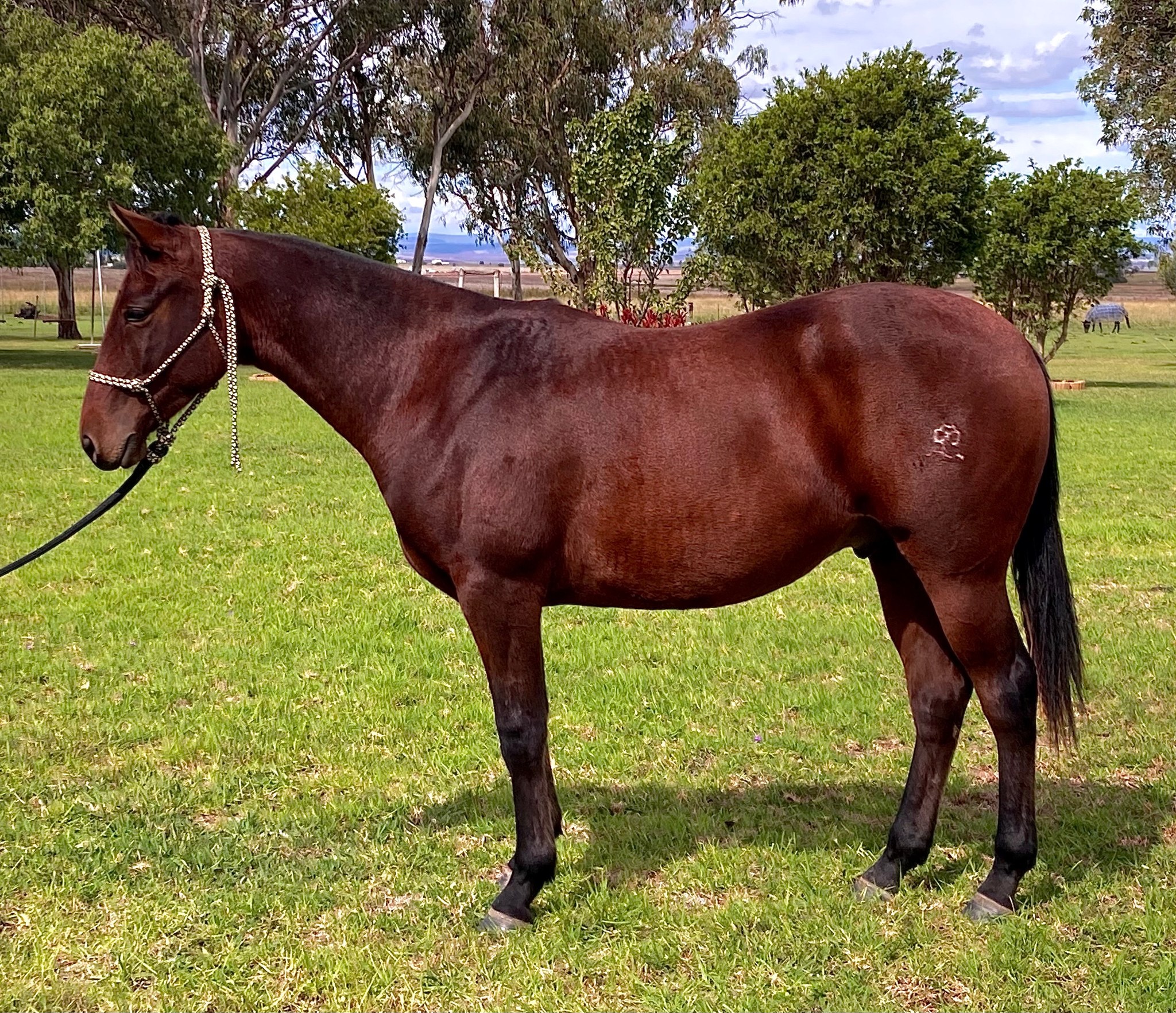 Great natured gelding, loves people. Well handled but naturally quiet. Smooth travelling. Has the breeding right the way through to be a top competition horse or an easy going work horse.