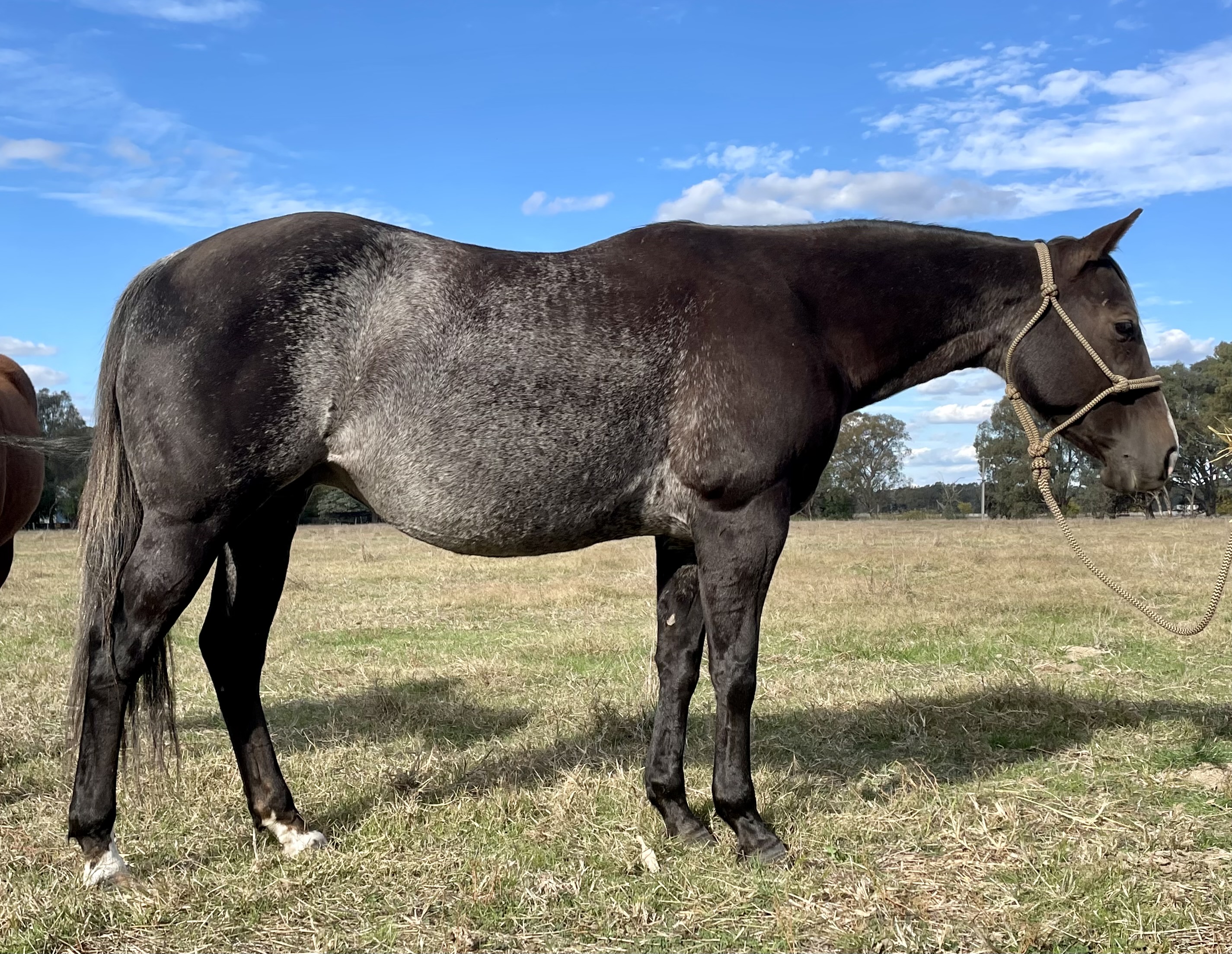 Life time opportunity, outstanding and rare genetics. Kitty is a half sister to Australians highest selling mare 'Bad In Black'. Currently in training with Aaron Scobbie is 2021 foal who is showing exciting potential to enter any cowhorse discipline. Easy breeder, don't miss her!