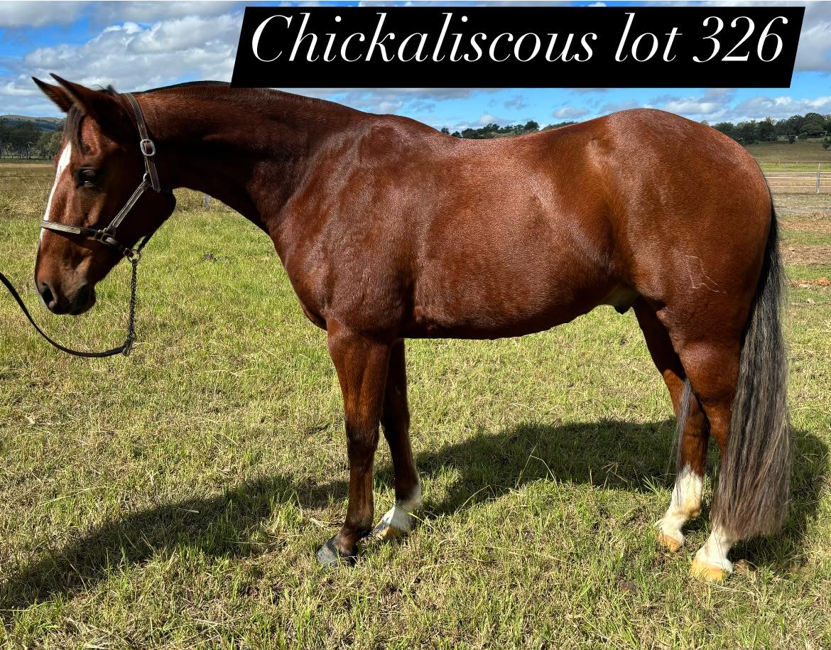 By the performed & producing "Destiny's Mr Chic". A talented, young gelding, ready to go on with. Showing great potential as a campdraft horse.