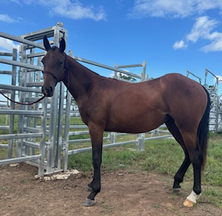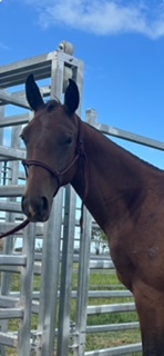 SECRETHEART MISS HIT, bay, dual registered filly, by the beautiful SECRETHEART HITMAN, quiet, well handled, easy to catch, trim mane and wash, leads well off buggy, loads and travels well on float or truck, mature approx 14.3h.