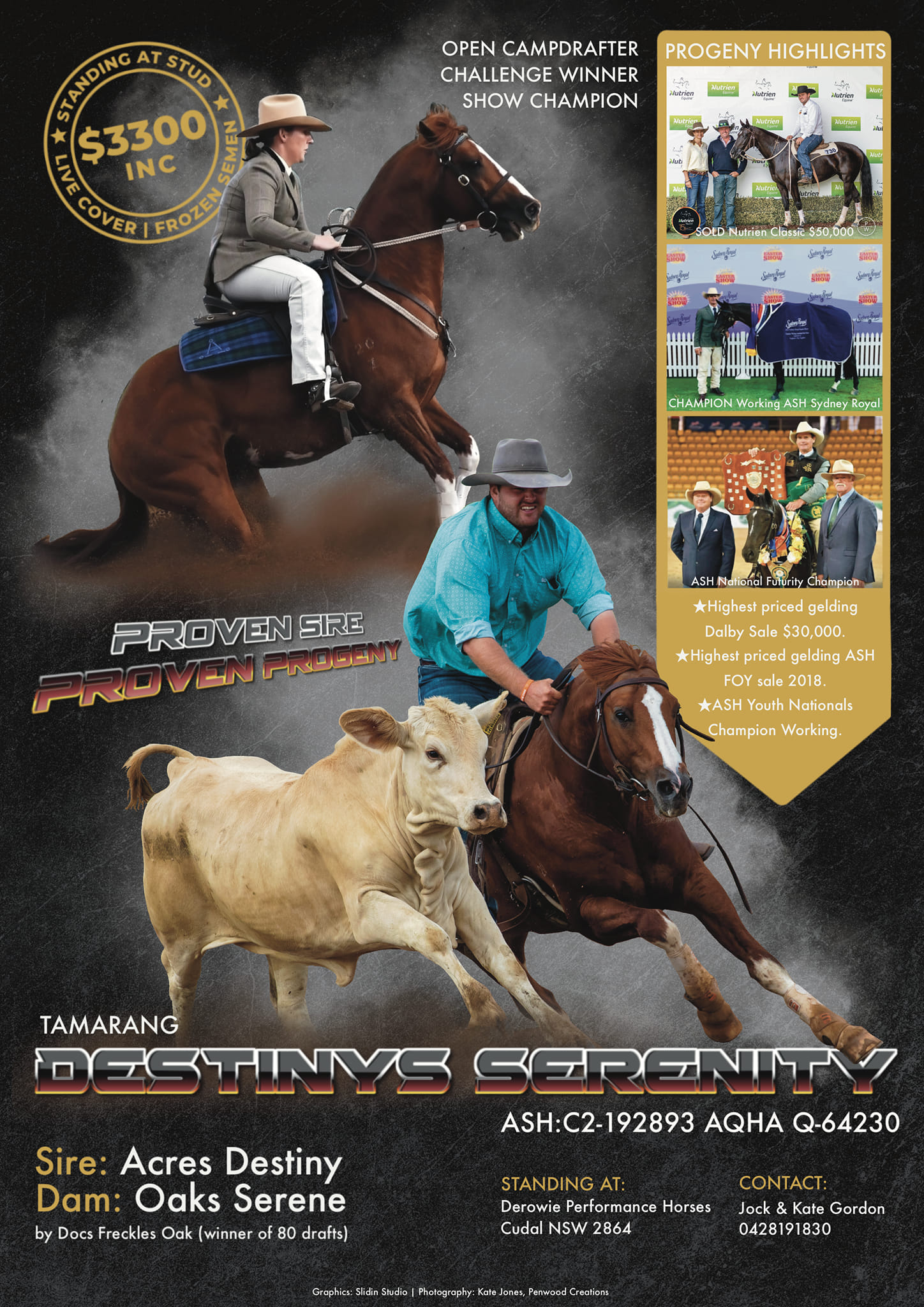 Outstanding type with a very trainable mind. SERENITY has produced ASH Futurity Champion, Champion Working Sydney Royal, challenge, campdraft and show winners at Royal, State and National levels. His progeny have sold for $50,000 at the classic and topped sales.